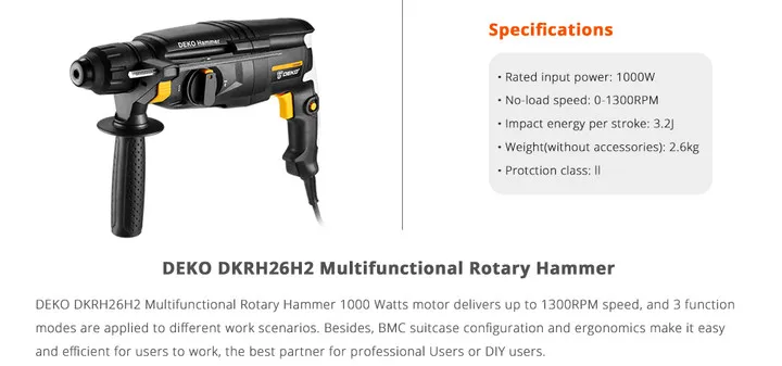 DEKO DKRH26H2DKRH20H3 Многофункциональный вращающийся молоток с BMC...
