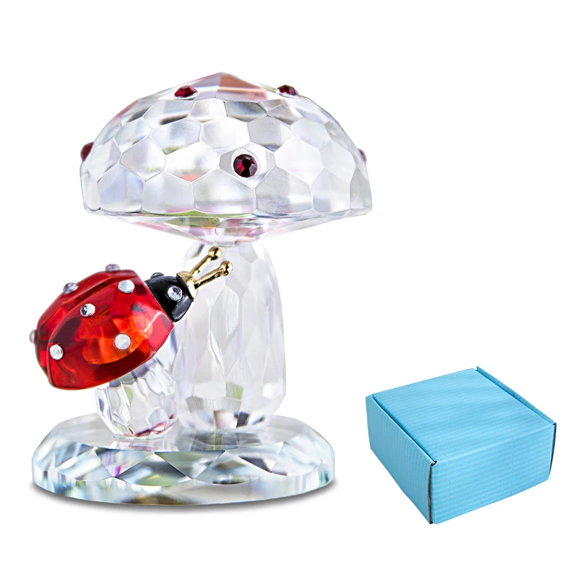 Кристальная Божья коровка на грибе H D Sparkle, миниатюрное животное, пресс-папье, украшение для домашнего стола, коллекционный подарок
