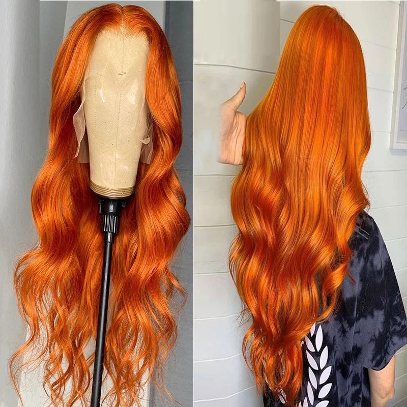 Имбирные оранжевые волнистые синтетические кружевные передние парики из высокотемпературного волокна для чернокожих женщин с детскими волосами парик для косплея