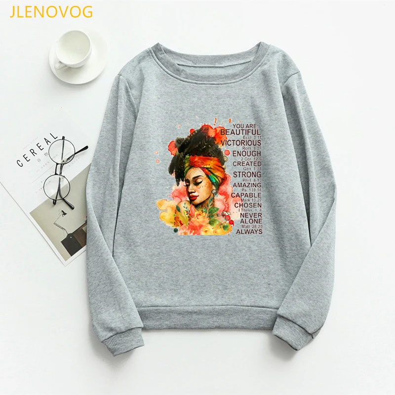 Свитшоты с принтом меланина, женские черные толстовки для девушек, ...