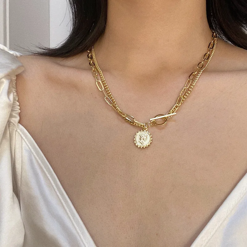 Винтажное резное золотое ожерелье для монет для женщин медаль кулон...