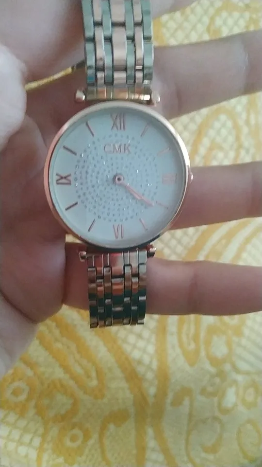 Отправили часы быстро. Пришли на 3 дня позже, чем обещали. Вид часов разочаровал. Не совпадает с фото. На циферблате не стразы, а блёстки, браслет покрашен неаккуратно, поцарапан под пленкой. Надпись на циферблате другая - CMK. Если это подделка недорогая, то не нужно это скрывать, вводить в заблуждение.