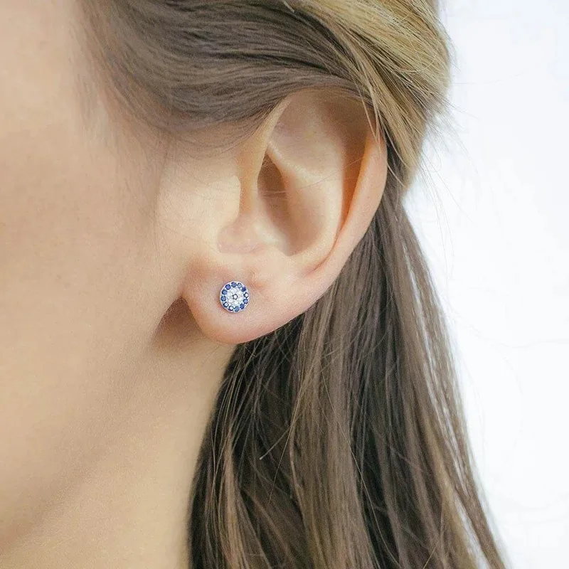 Турецкие голубые серьги-гвоздики от сглаза для женщин Изящные круглые микро-инкрустированные фианитами
