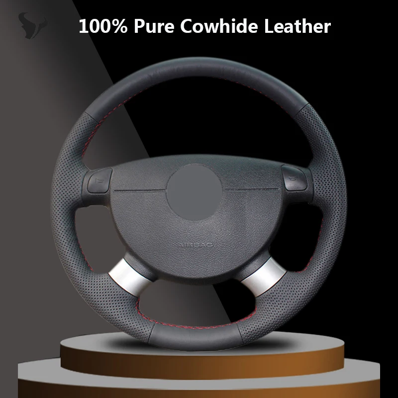 Черный чехол на руль из натуральной кожи для шевролет Авео лова buick Excelle daewoo gentra 2013 2015 lacetti 2006-2012