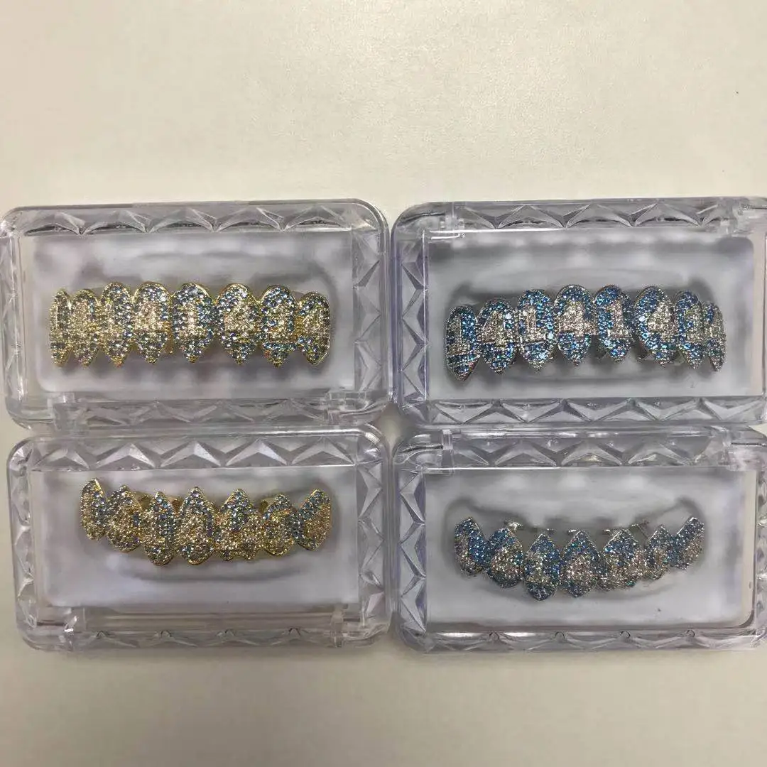 1414 хип-хоп кубический цирконий зубы Grillz Топ и низ Grillz стоматологические рот Панк зубы шапки Косплей вечерние рэпер мужские ювелирные изделия подарок