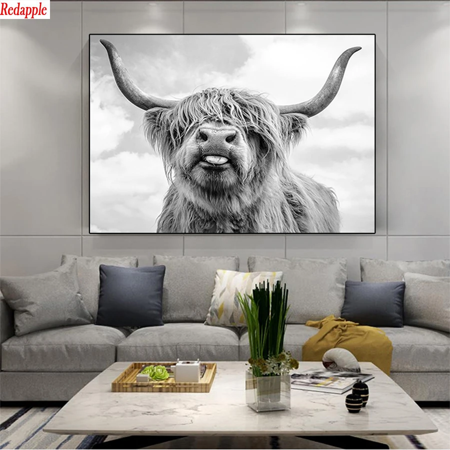 Алмазная Вышивка Животных черно-белое искусство, корова полная квадратная круглая дрель алмазная живопись diy Алмазная мозаика украшение для дома