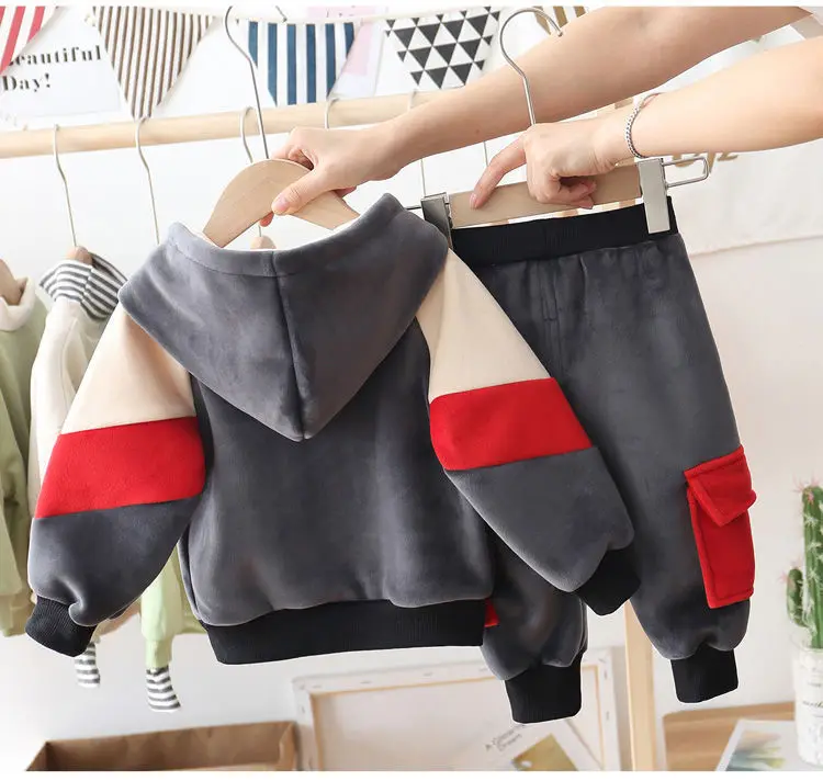 Костюм детский зимний из вельветового свитера с капюшоном и штанов