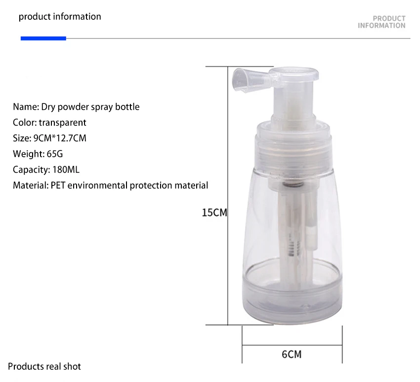 180 мл, портативная пустая многоразовая бутылка, сухой рассыпчатый порошок, стандартная упаковка с фиксирующей насадкой, инструмент для парикмахерской