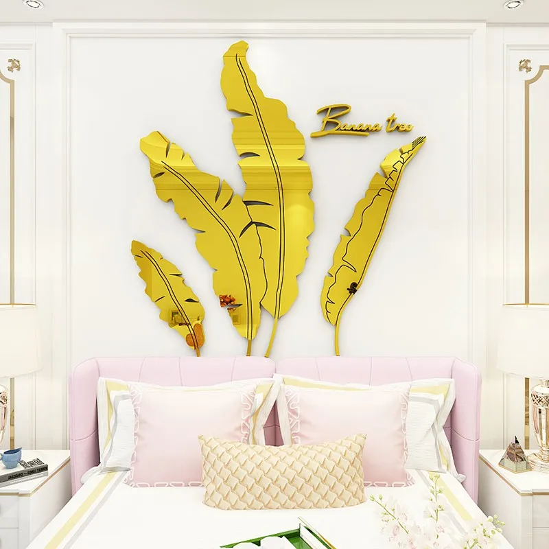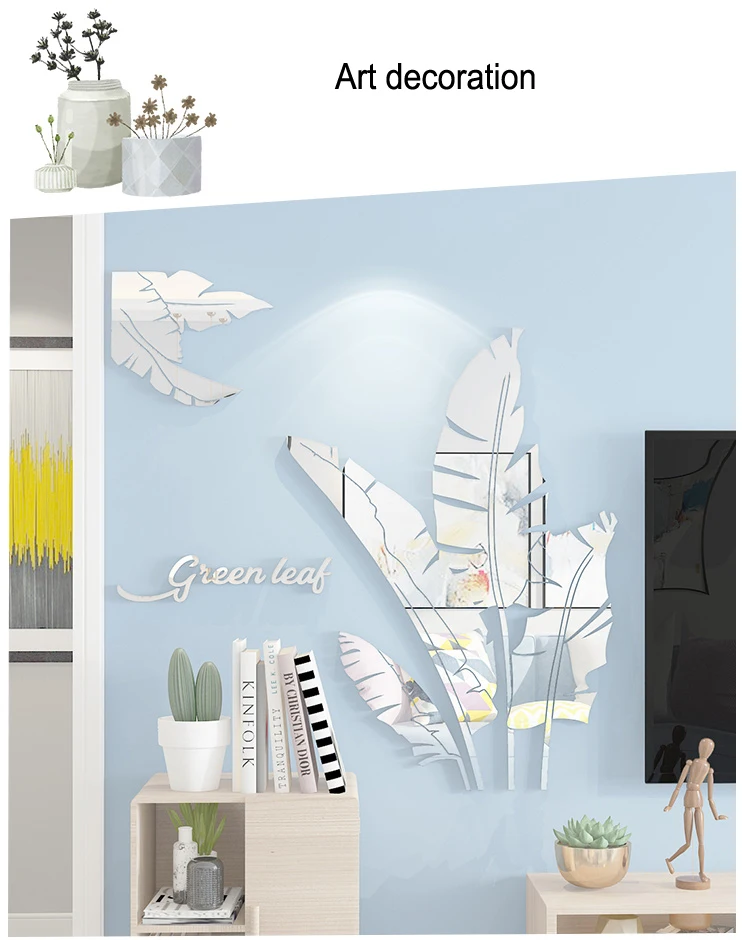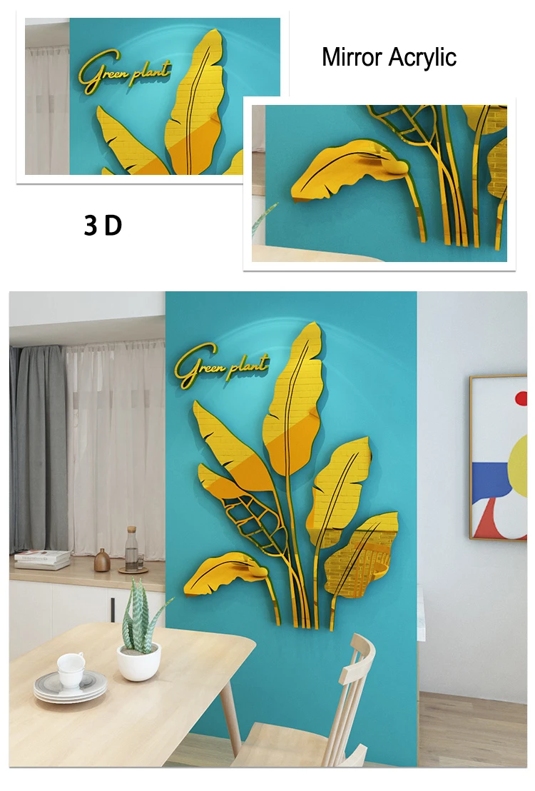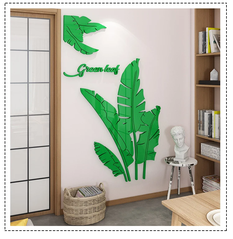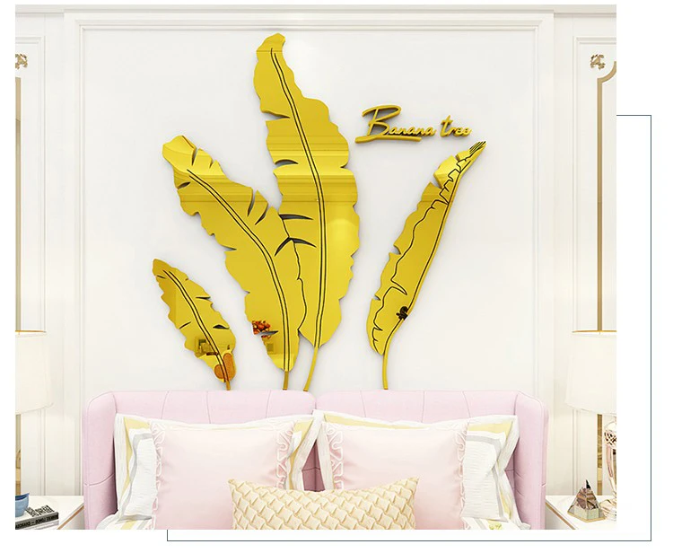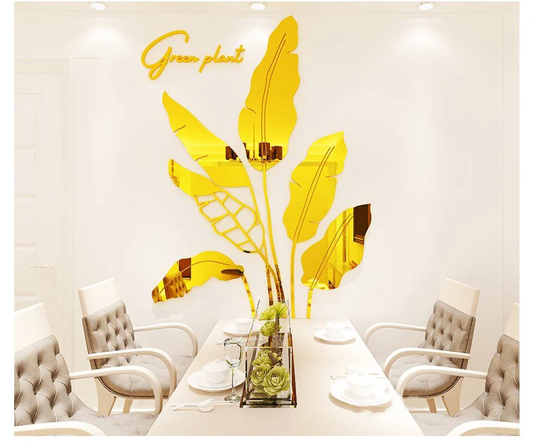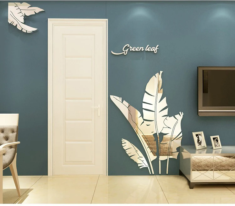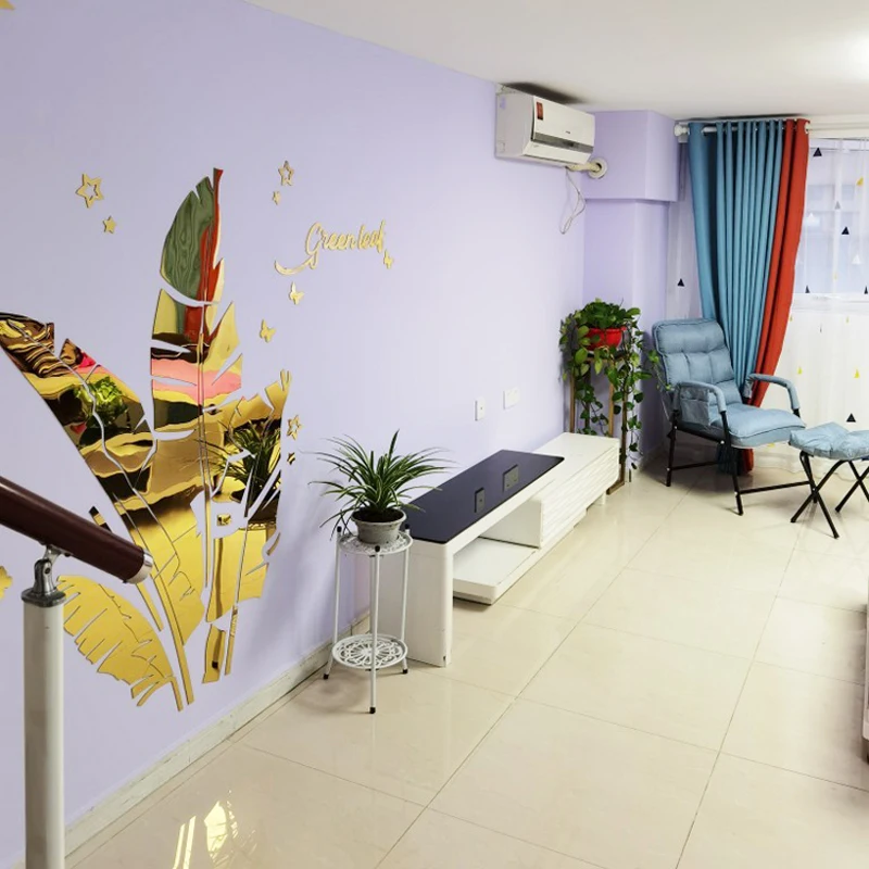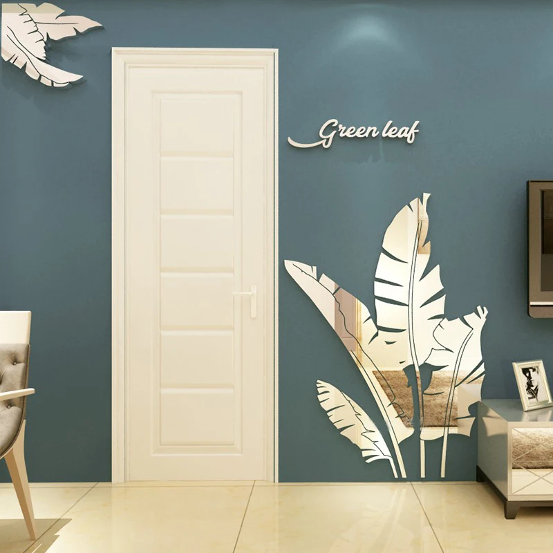 Зеленые листья акриловые зеркальные настенные наклейки для гостиной банановое дерево модные 3d зеркальные листья домашний декор оконные художественные украшения