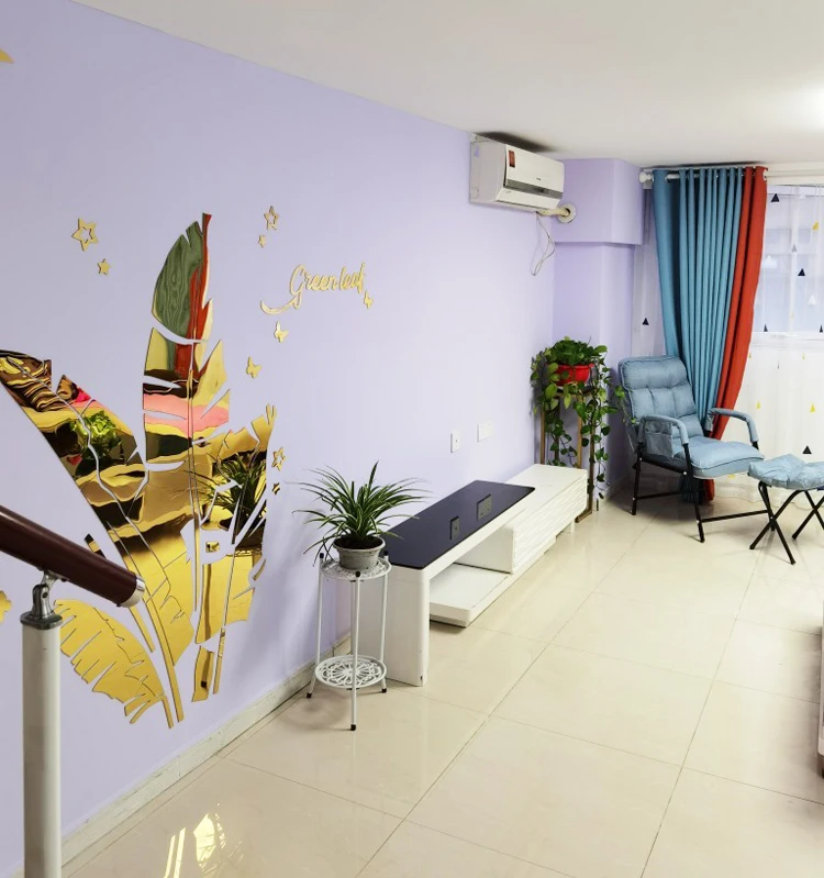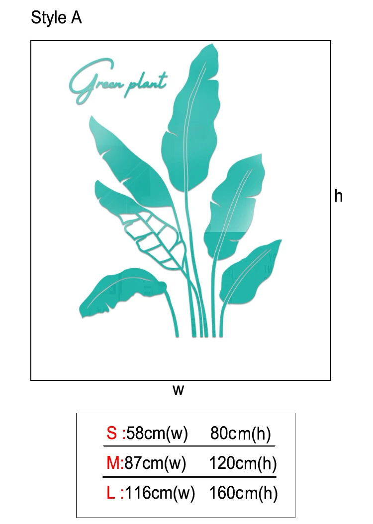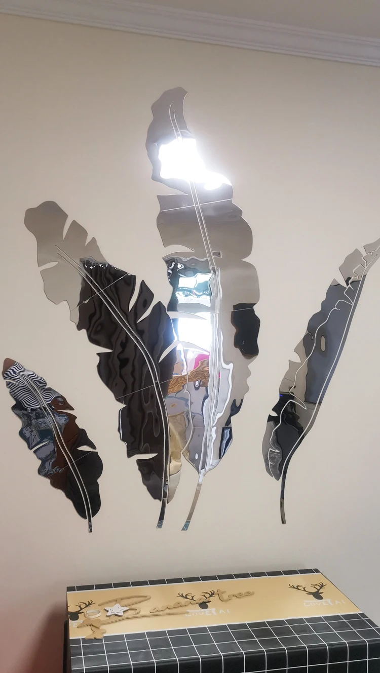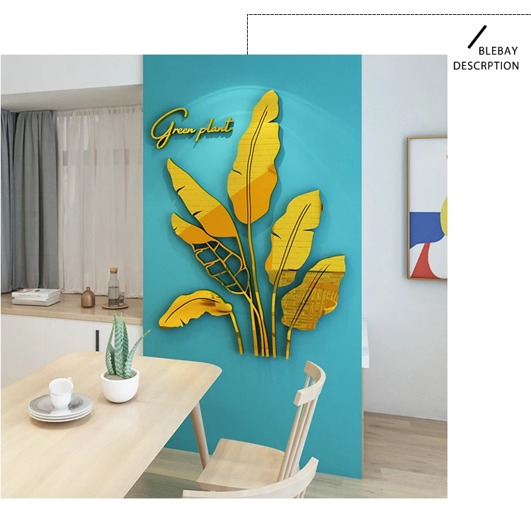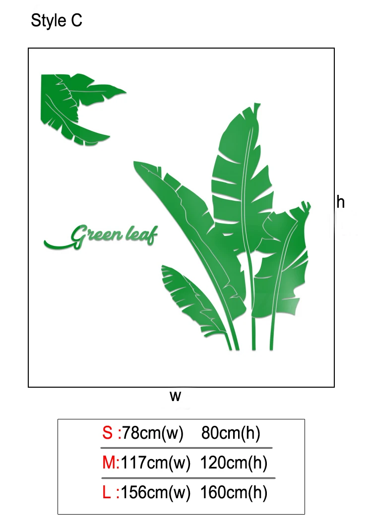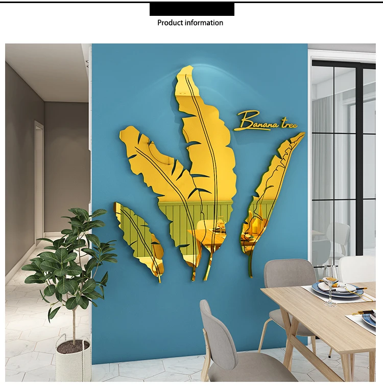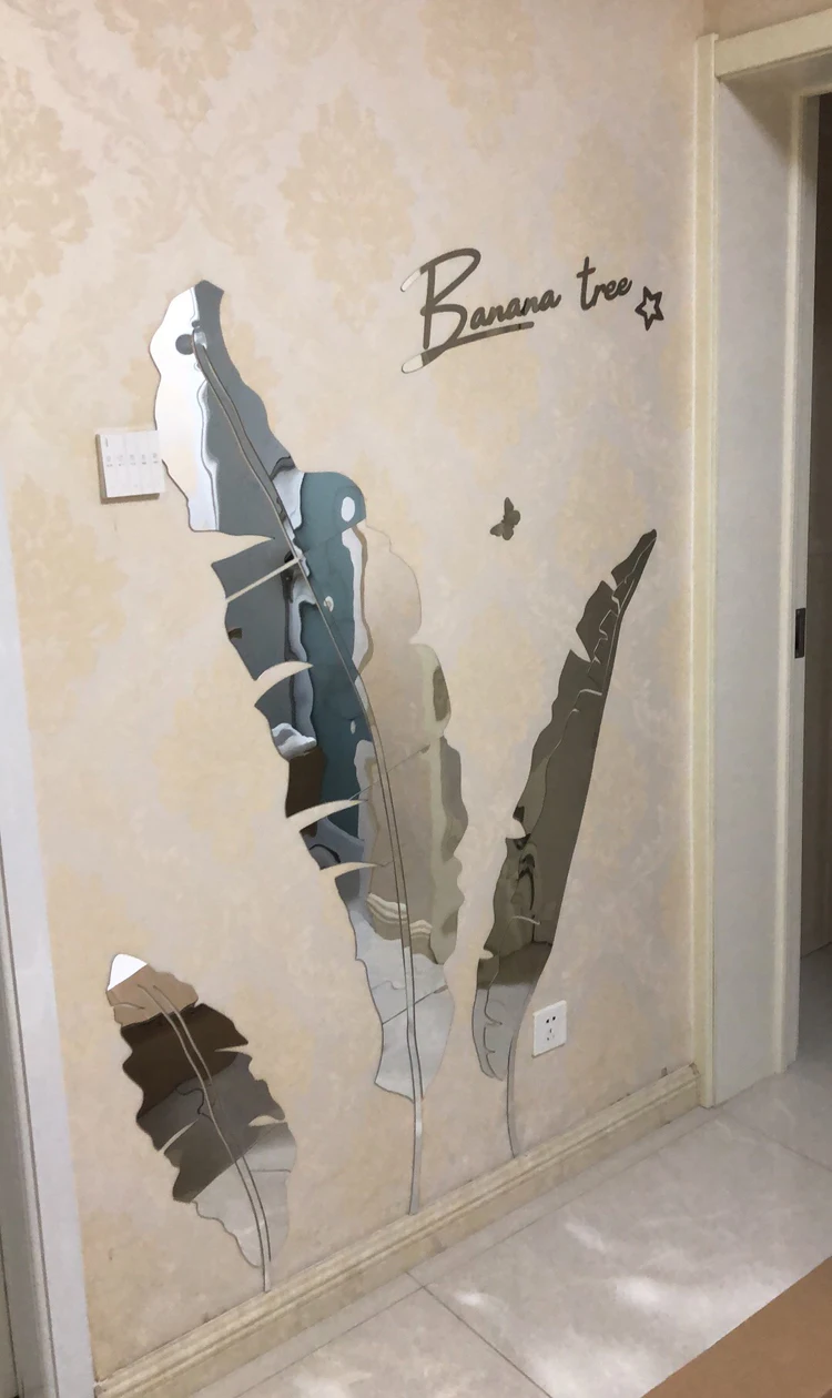 Зеленые листья акриловые зеркальные настенные наклейки для гостиной банановое дерево модные 3d зеркальные листья домашний декор оконные художественные украшения