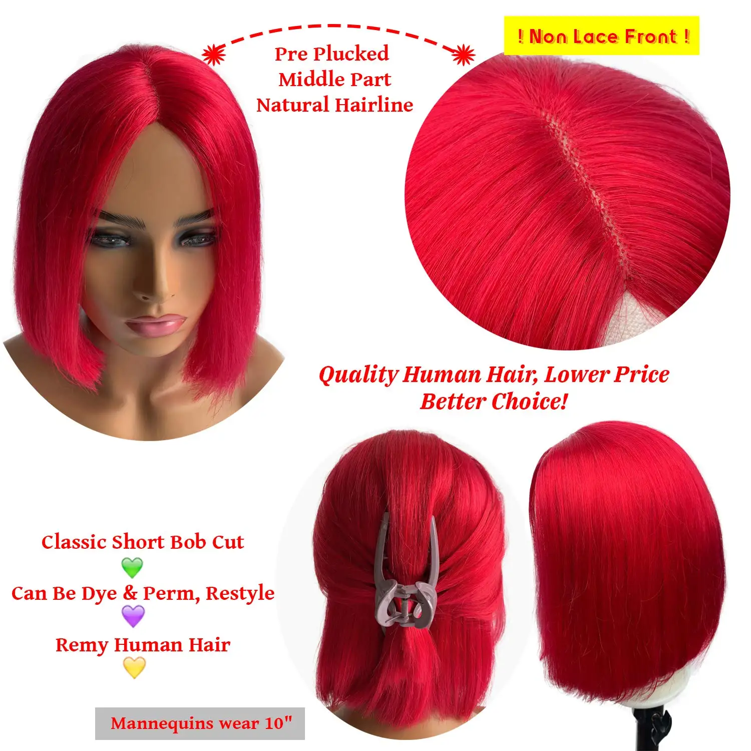 Парик Боб красного цвета, без шнуровки, короткие парики боб, человеческие волосы, полностью машинное изготовление, без клея, 180% плотность, прямые для черных женщин Ubetta