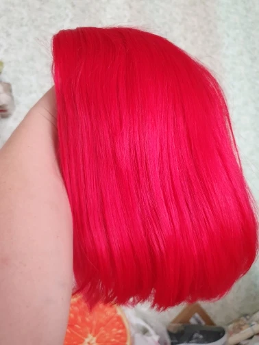 Парик очень мягкий. Красный был слишком ярким для меня, поэтому я покрасить его, чтобы сделать его темнее. Парик хорошо сделал краску и не выпадал. Я вырезал его, чтобы сделать его более коротким, что выглядело намного лучше. Быстрая доставка. Я рад, что парик получился.