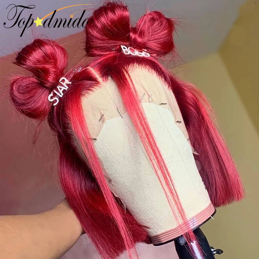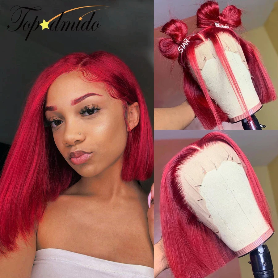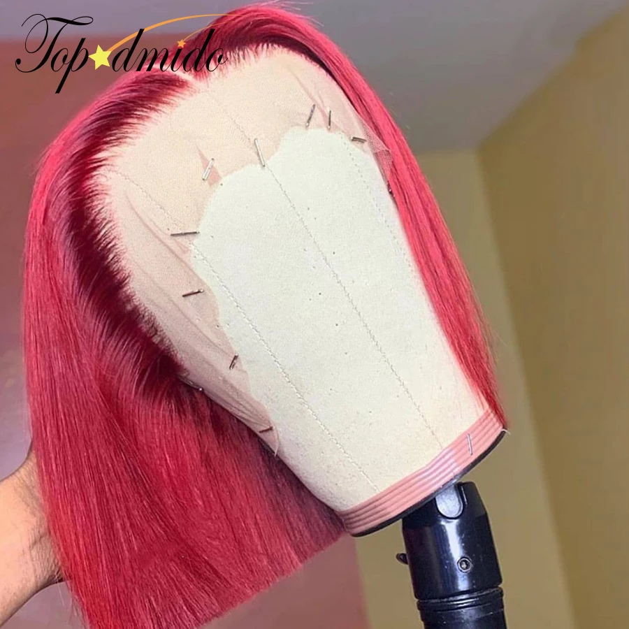 TOPODMIDO 13x6x1 Бразильский короткий Боб Синтетические волосы на кружеве парики с детскими волосами 150% плотность красного цвета Remy человеческих волос парики для черные женские