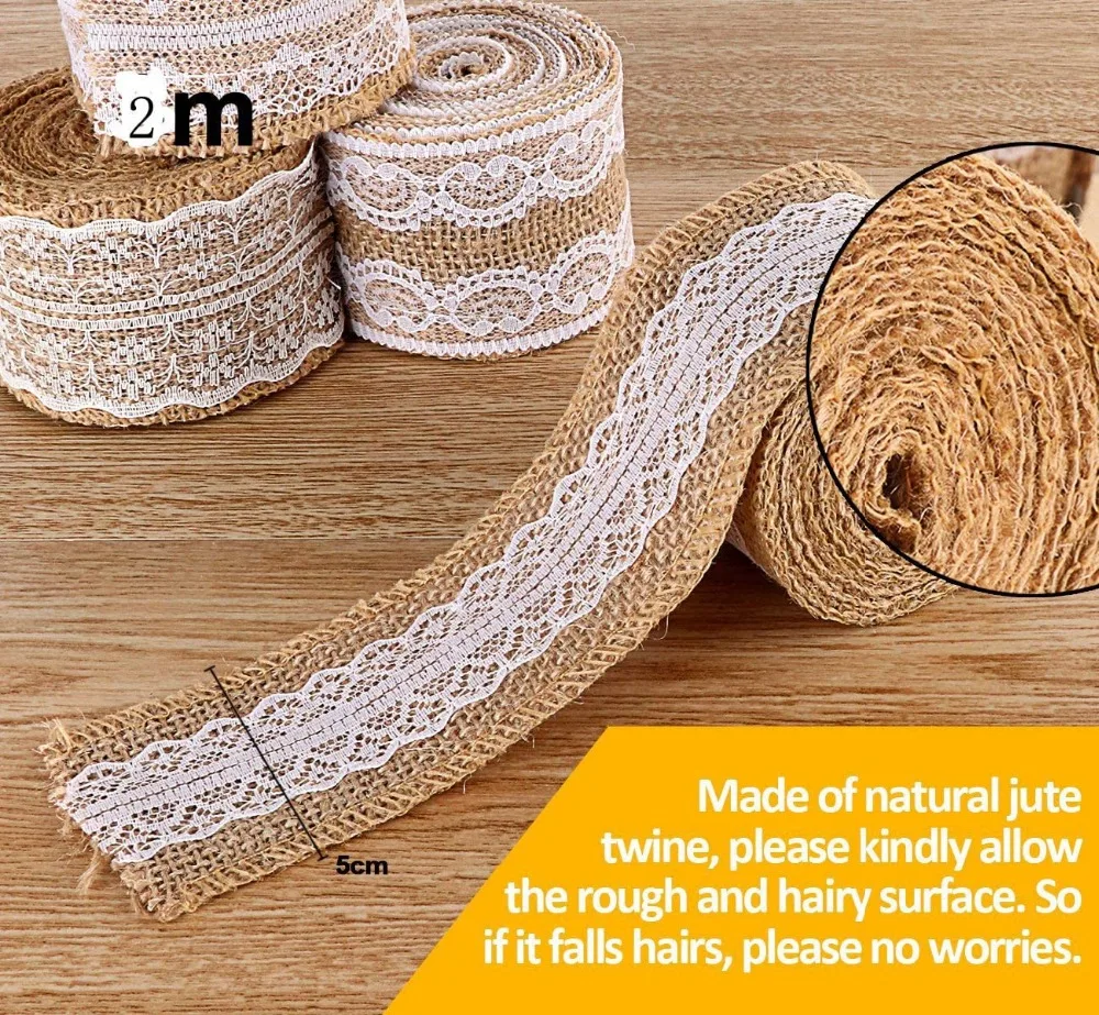 Лента из натуральной мешковины рулонов с кружевным джутовым шпагатом для рукоделия, для свадебной вечеринки