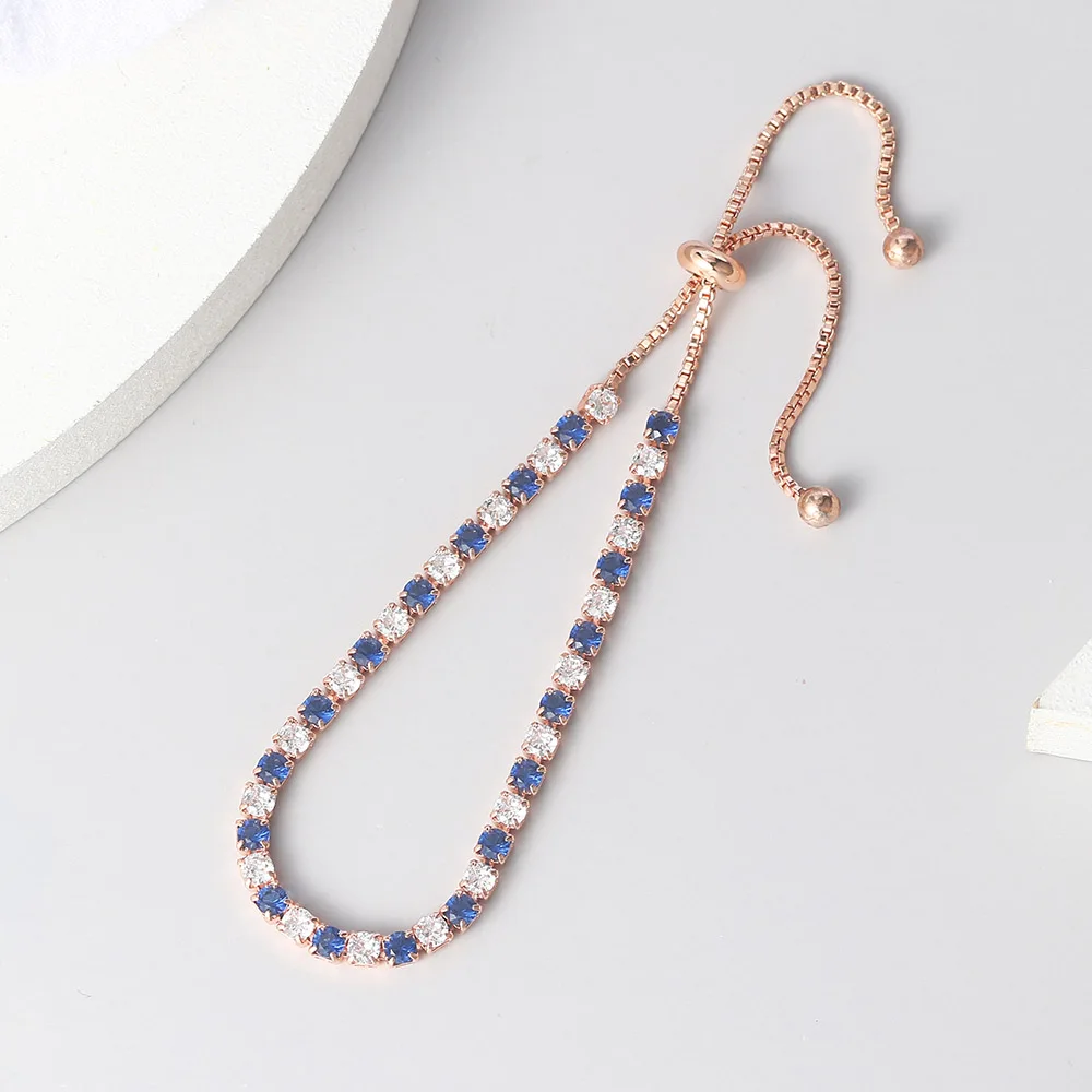 Женский простой браслет с синим круглым цирконием, розовое золото, ...