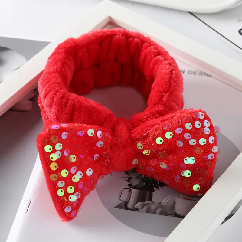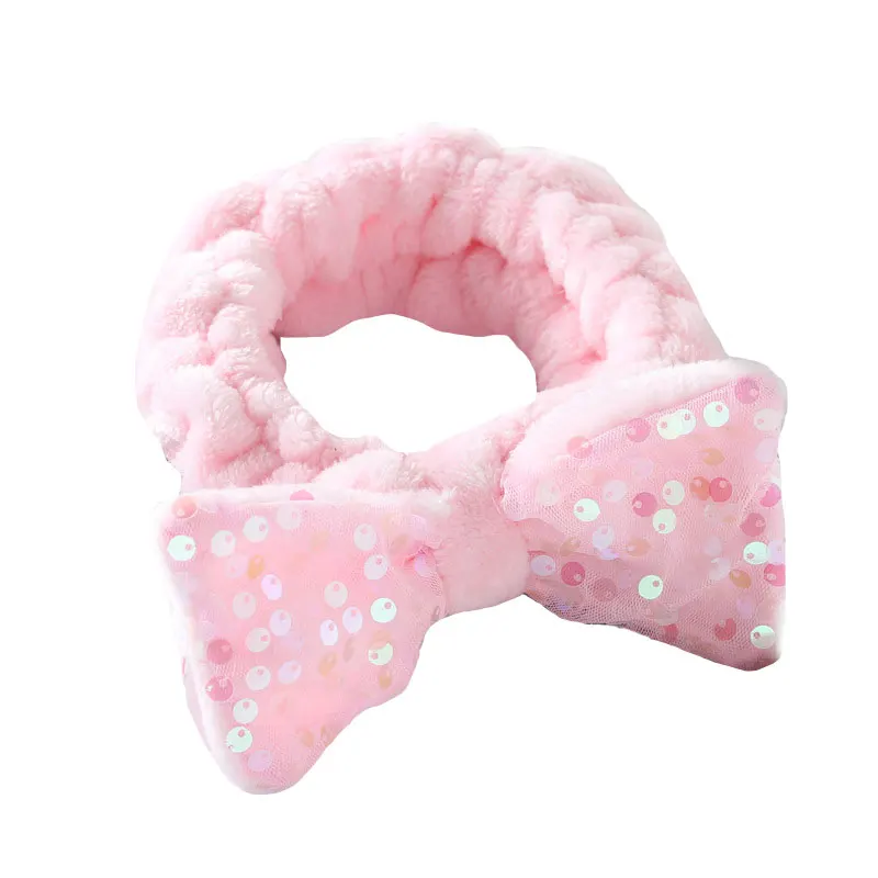 Мягкие теплые повязки для волос с бантиком из кораллового флиса, блестящие повязки для волос с блестками, повязка для волос, повязка для макияжа, подарок