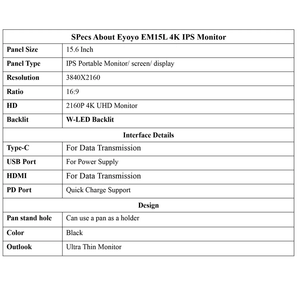 Eyoyo EM15L 15,6 "4K HDR монитор 2160P IPS ЖК-экран HDMI USB C игровые мониторы для ПК портативный геймерский телефон PS4 Xbox дисплей