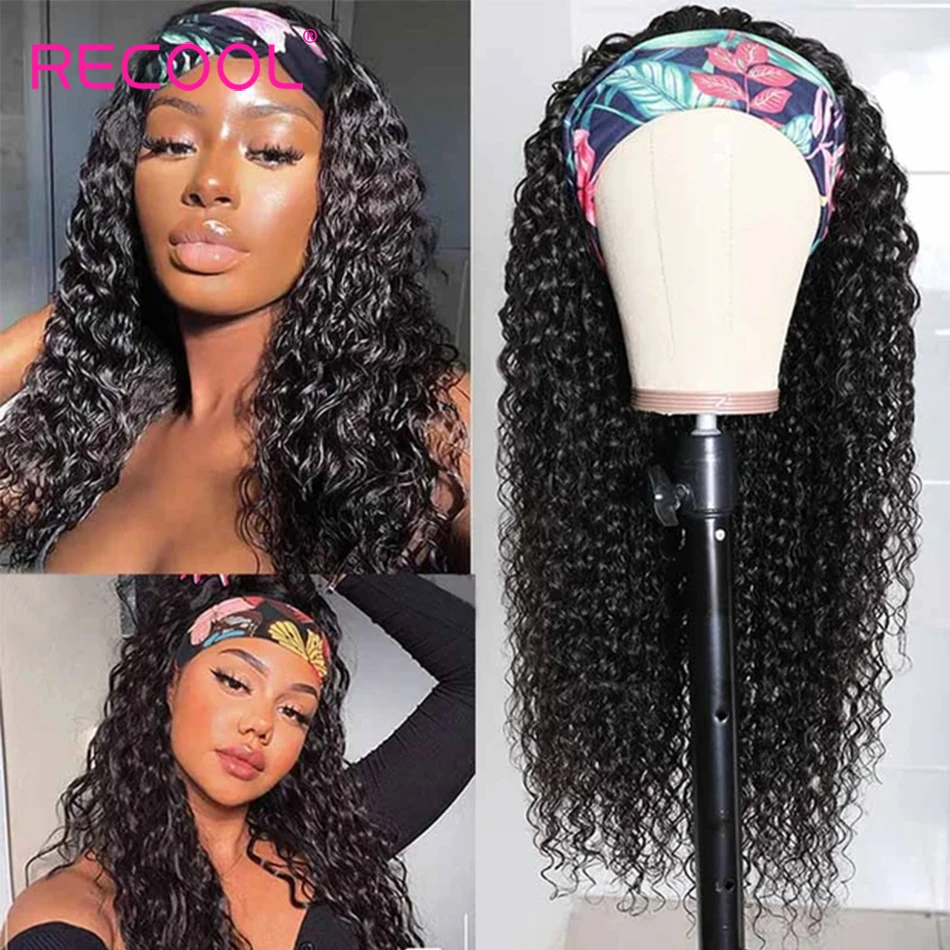 Recool глубокая волна парик с головной повязкой человеческие волосы...