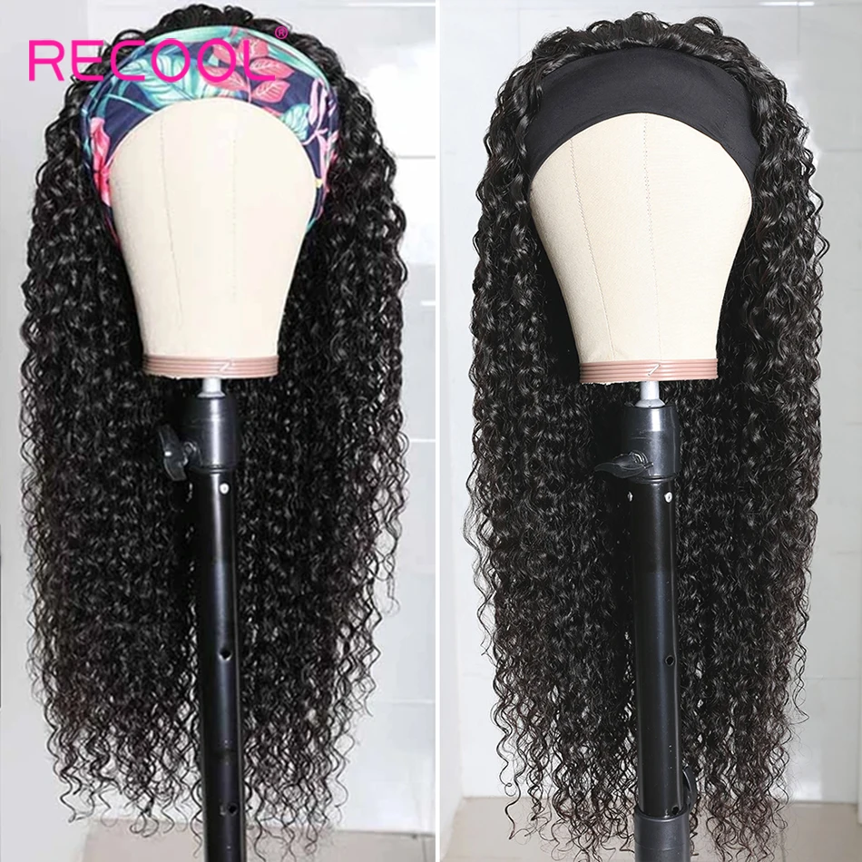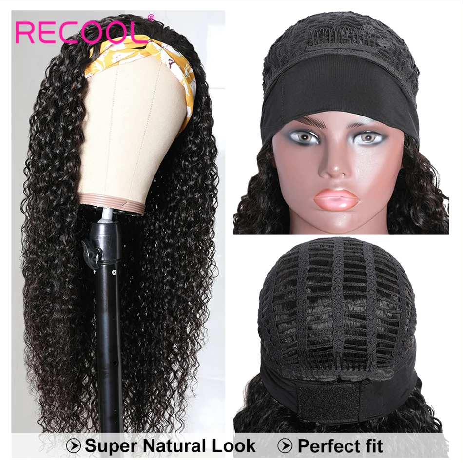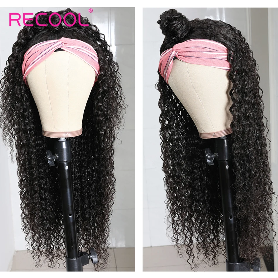 Recool кудрявые человеческие волосы парик с головной повязкой бразильские человеческие волосы парики для черных женщин Remy волосы машина сделано парик 150 плотность