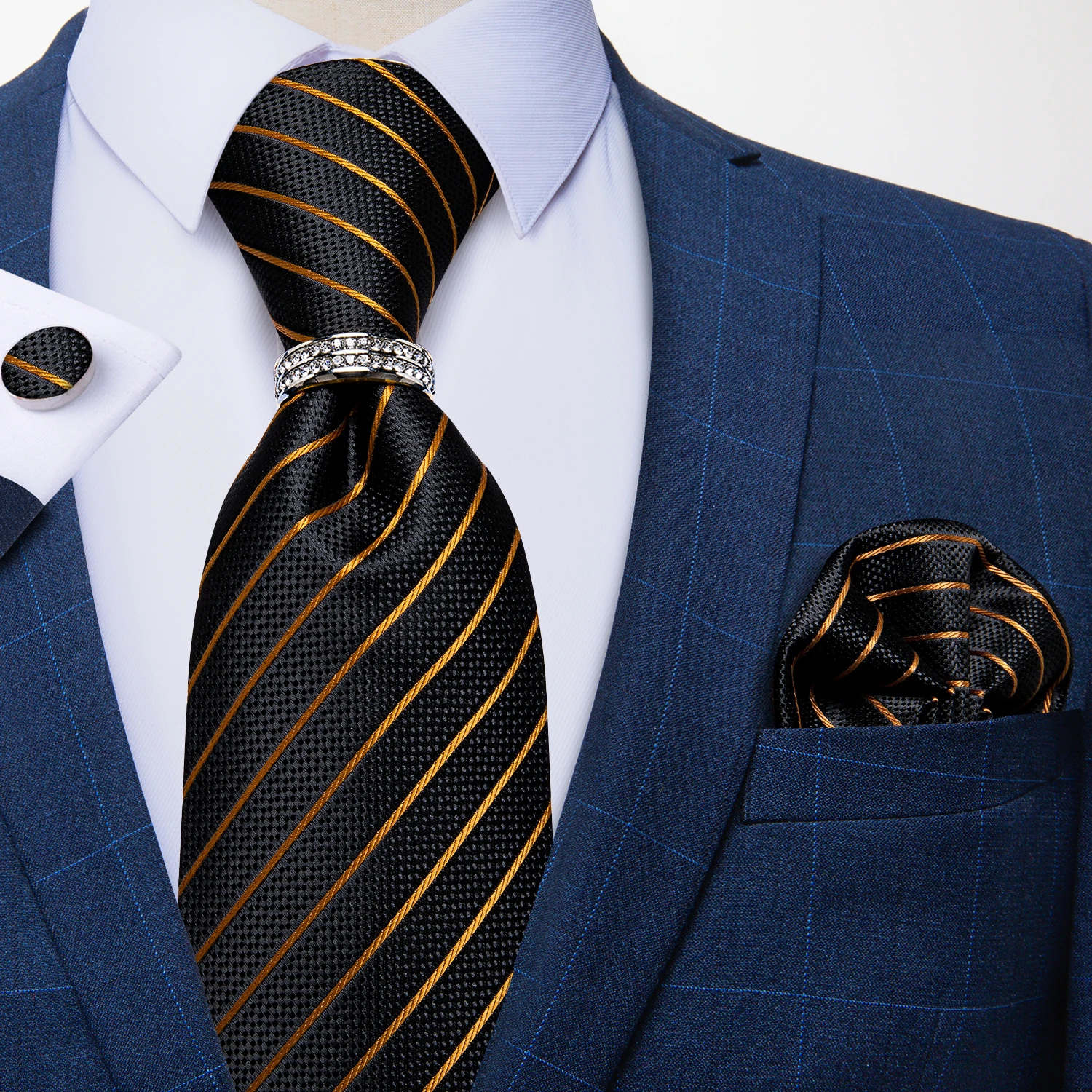 Новый мужской галстук набор черный Золотой Полосатый Бизнес Формальные Свадебные аксессуары для галстуков карманные квадратные запонки модные Cravat DiBanGu