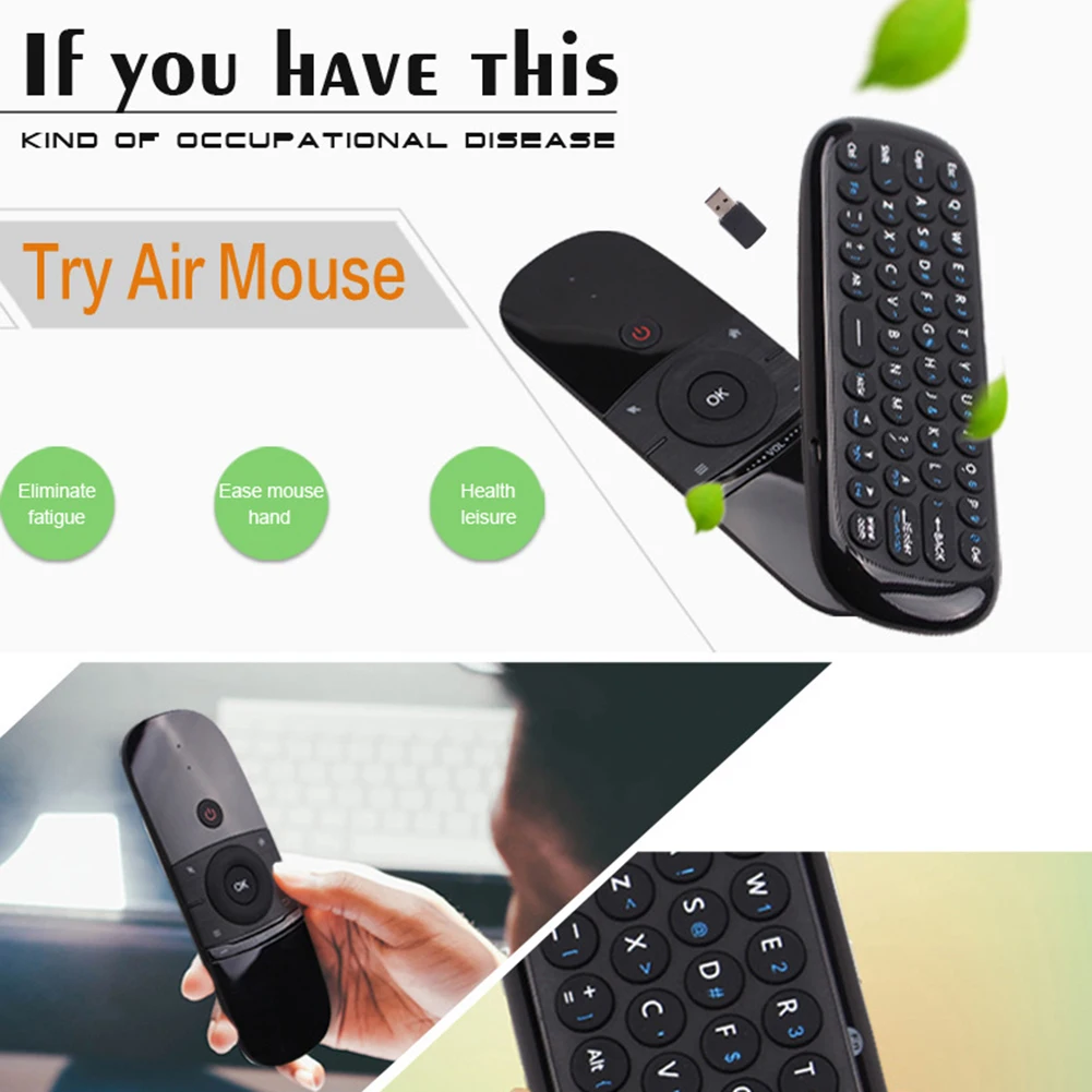 Характеристики:Это 2,4G 6-axis air mouse-это пульта дистанционного управления Стильный емкостный стилус, служащий также в мышь, клавиатура и motion чувство поддержки.Он может предоставить людям уникальный и способный инструмент для управления их ПК, смарт-ТВ, для Android TV Box, медиаплеер, телеприставка, просто перемещая его прямо в воздух.Это plug and play, простой и гладкий.Мини-клавиатура позволяет удобно печатать.С функцией инфракрасного обучения, он может узнать различный пульт дистанционного управления, для управления телевизором и другими медиа-плеерами. Название товара: Беспроводная КлавиатураМатериал: пластик + силиконКоробка передач и Управление: 2,4 ГГцРадиочастотное беспроводное Количество клавиш: 57Расстояние дистанционного управления: до 10 мТип батареи: встроенный 3,7 V 300mAh литиевая батарея (все указанные аккумуляторы входят в комплект поставки)Рабочий ток: <9 мАТок в режиме ожидания: <25uAФункция ИК-обучения: Да CPI (скорость движения указателя мыши)Регулировка: ДаАвтоматический Режим сна и пробуждения: ДаХарактеристики: беспроводной, дизайн клавиатуры, 6-Axix сенсор, многофункциональныйРазмеры: 15,8 см x 5,5 см x 1,6 см/6,22 "x 2,17" x 0,65 "(прибл.) Примечания:Благодаря светильник и экрана Цвет Товара может быть s светильник ly отличается из-за характеристик монитора компьютера.Возможны незначительные отклонения в размерах из-за различных измерений вручную. Посылка включает в себя:Клавиатура Air Mouse-1 шт.1 usb-приемник1 x Руководство пользователя