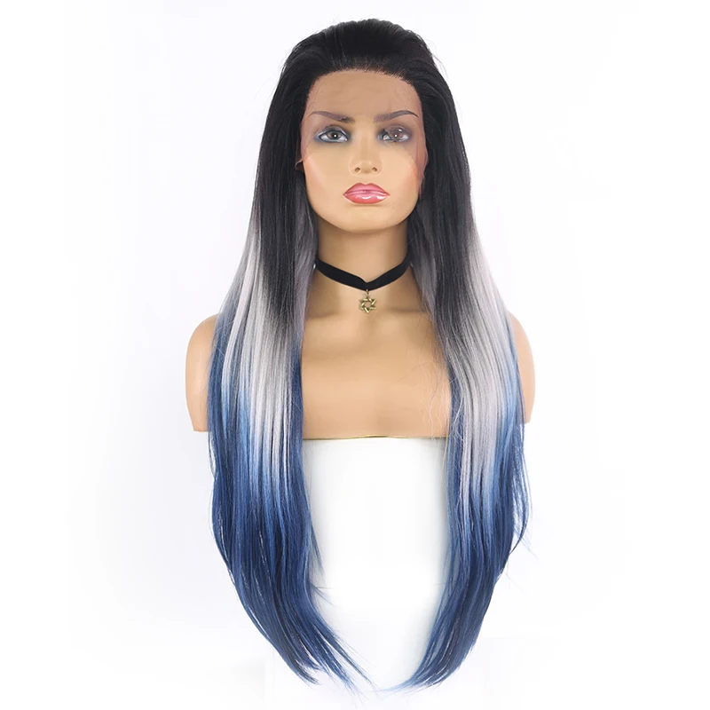 Женский длинный синтетический парик, коричневый, серый, синий, длинный