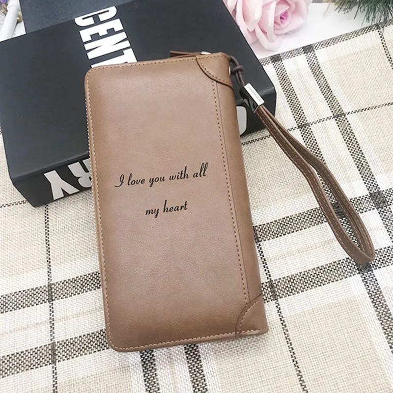 Мужской бумажник на молнии, мужской бумажник с индивидуальной грави...