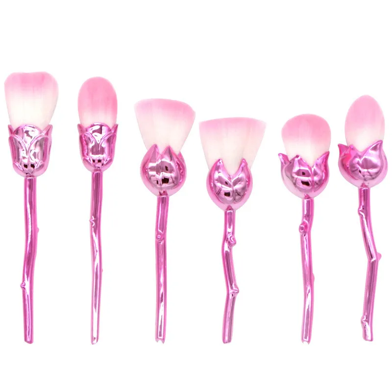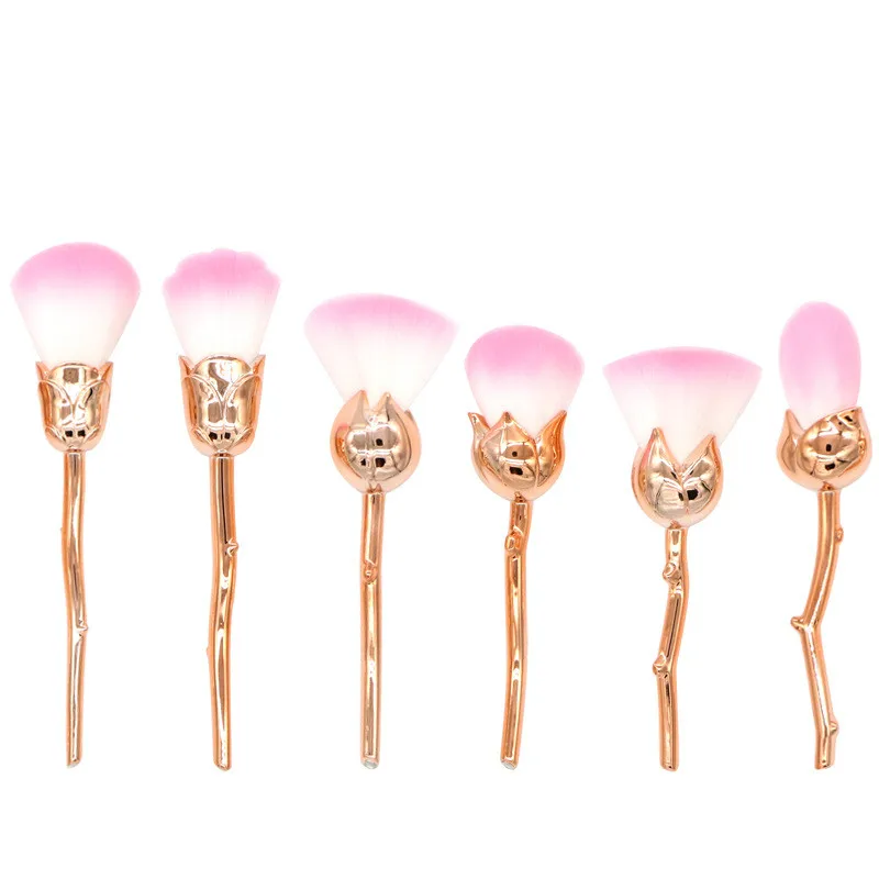 6 шт.компл., кисти для макияжа в розовом стиле, золотистые, шелковистые, мягкие, с ручками, для красоты, для девушек, для косметики, инструмент для макияжа, красочные элегантные кисти
