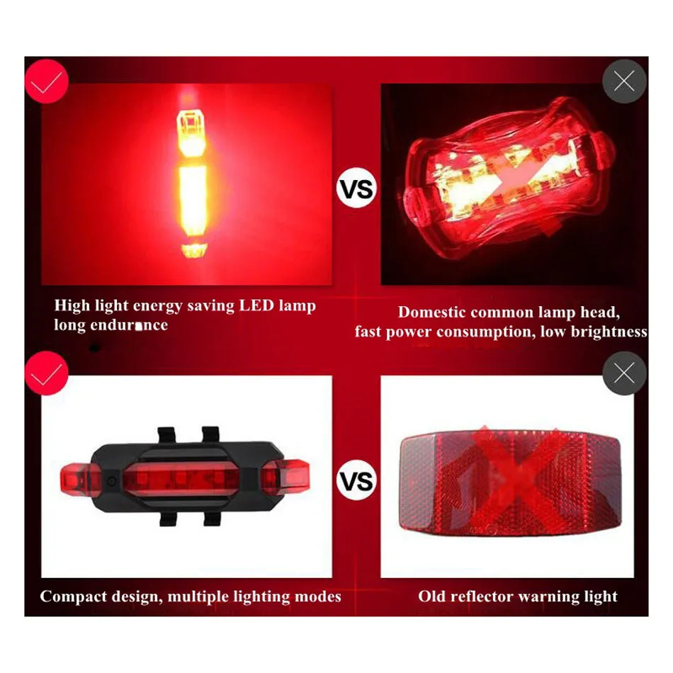 Водонепроницаемый Велосипедный свет, светодиодные задние фонари безопасность заднего хвоста, Переносной Фонарь для велоспорта, зарядка от USB или аккумулятор