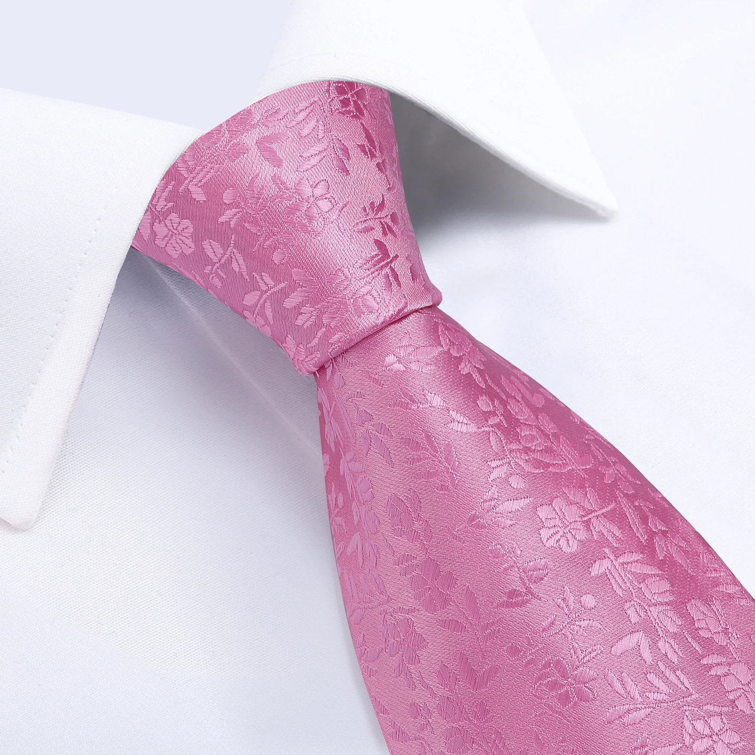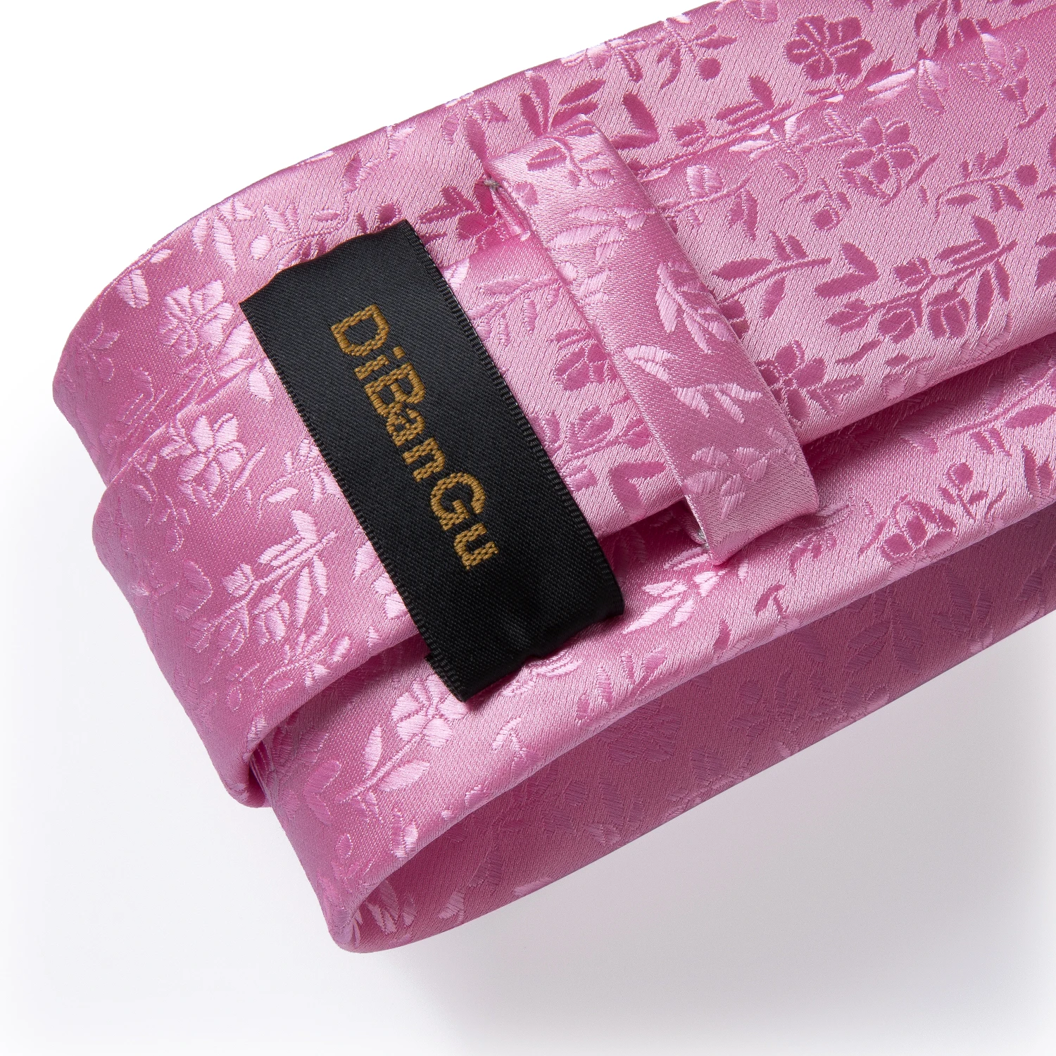 Новый модный мужской свадебный деловой галстук набор 100% шелк розовый цветочный Аксессуары для галстуков карманные Квадратные запонки DiBanGu
