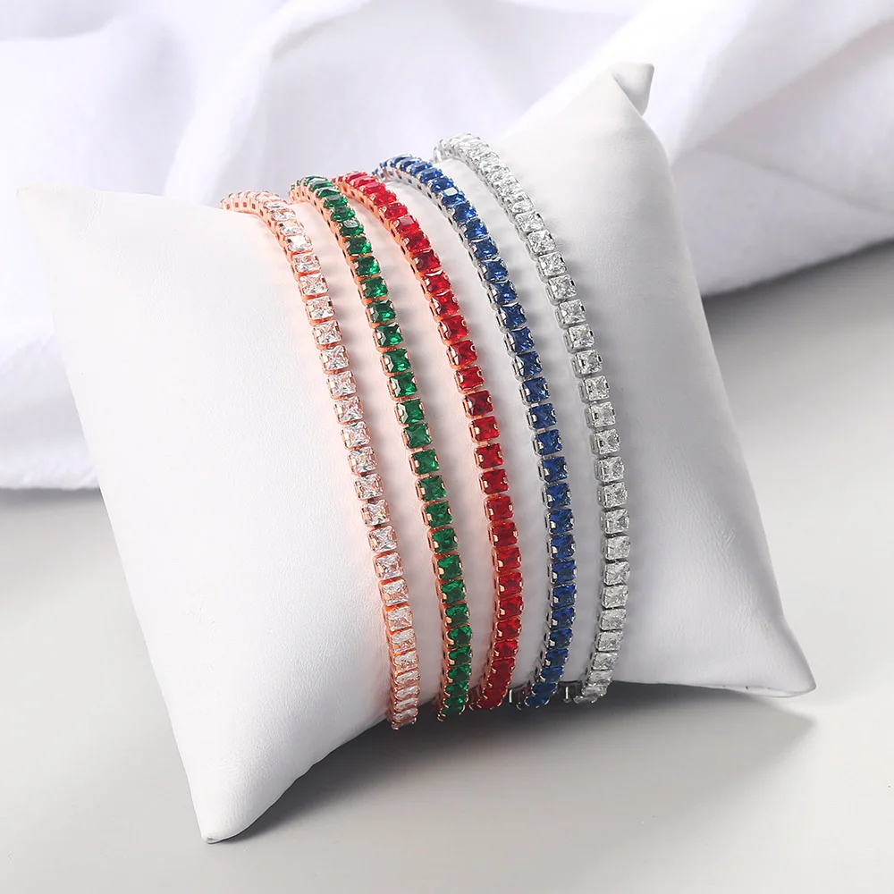Теннисный браслет для женщин Kpop роскошный квадратный разноцветный 3*3 мм циркон корейский женский браслет оптовая продажа регулируемое ювелирное изделие DZH007