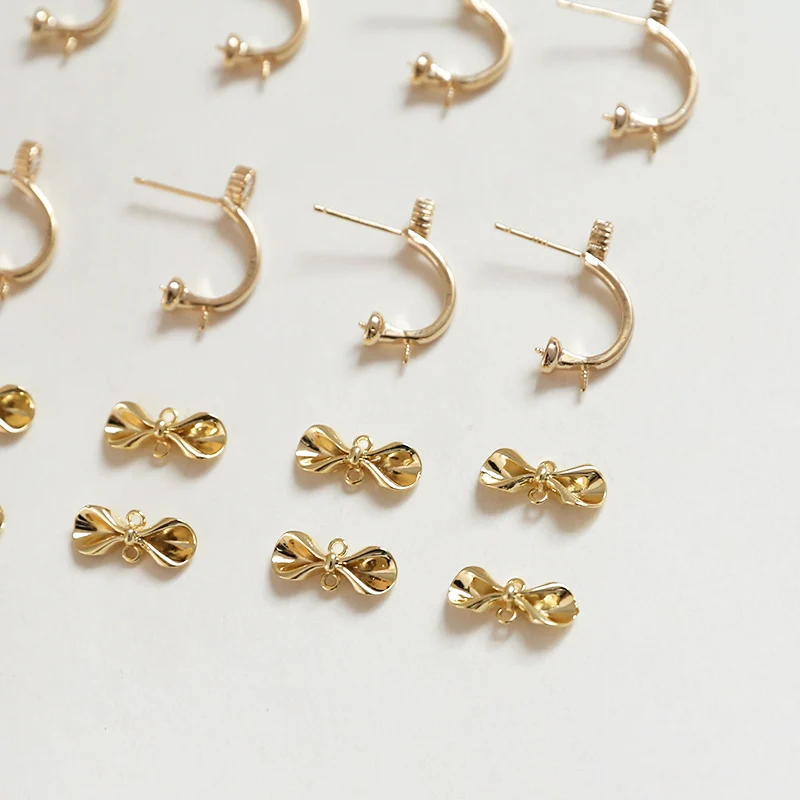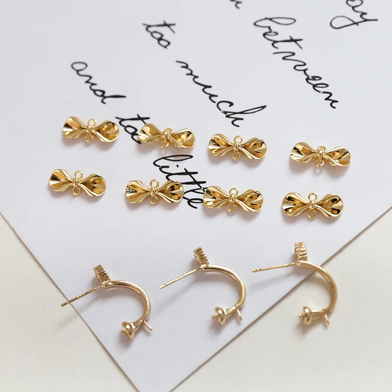 2 шт., элегантные медные серьги-гвоздики для женщин, трендовые полукруглые ушные крючки, кулон с бантом, diy ювелирные изделия, материал, аксессуары