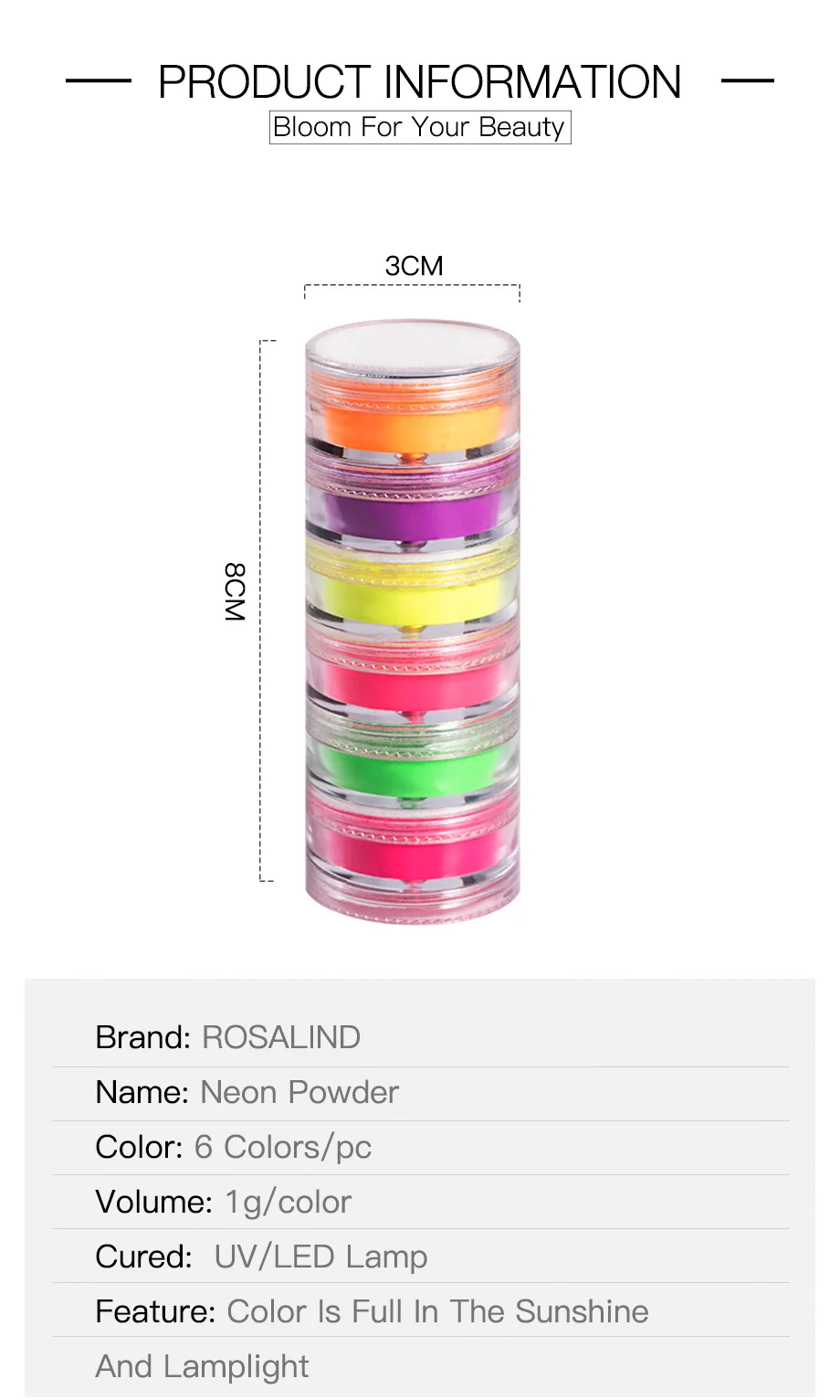Яркий пигмент ROSALIND для дизайна ногтей, 6 цветов, неоновая пудра, базовый топ, украшение пальто пигмент