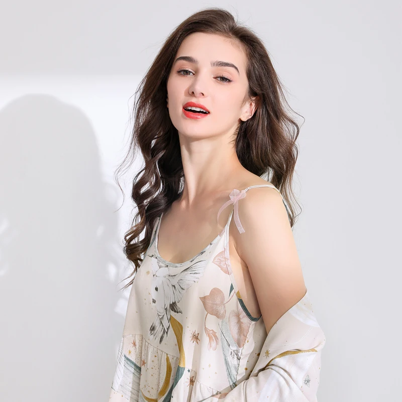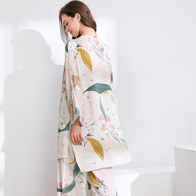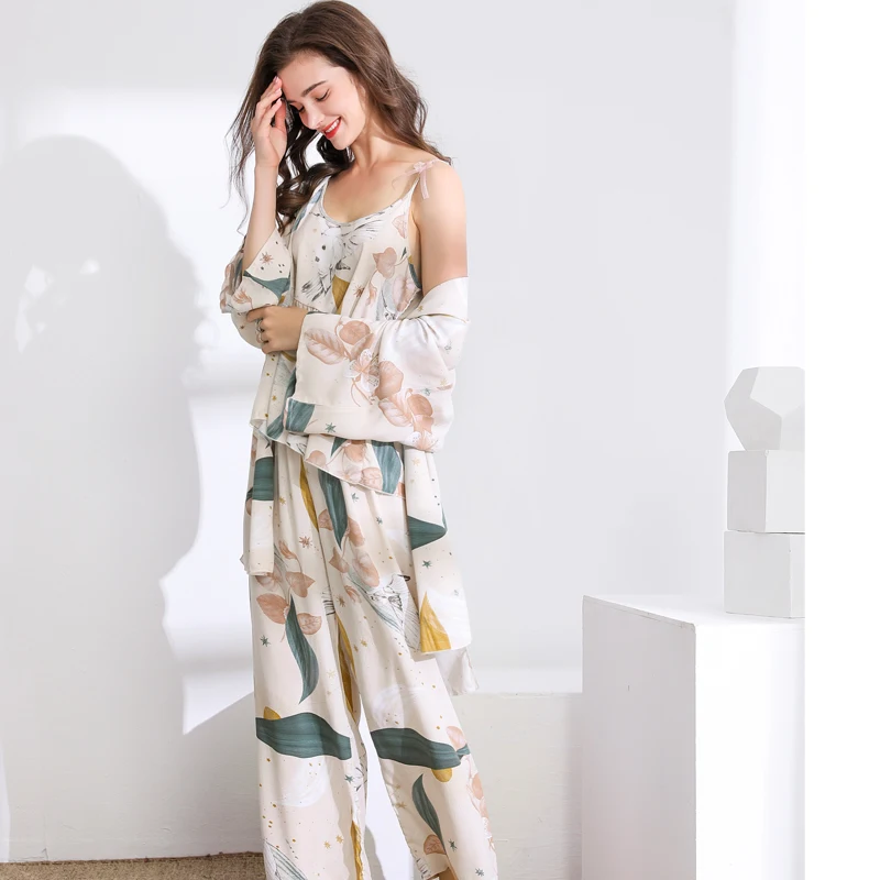 Женская пижама с принтом звездного неба и цветочным принтом, комплект из 3 предметов, женская пижама, свободная элегантная одежда для сна на весну и осень