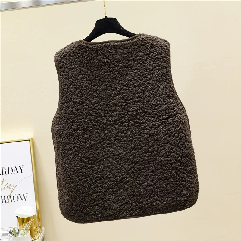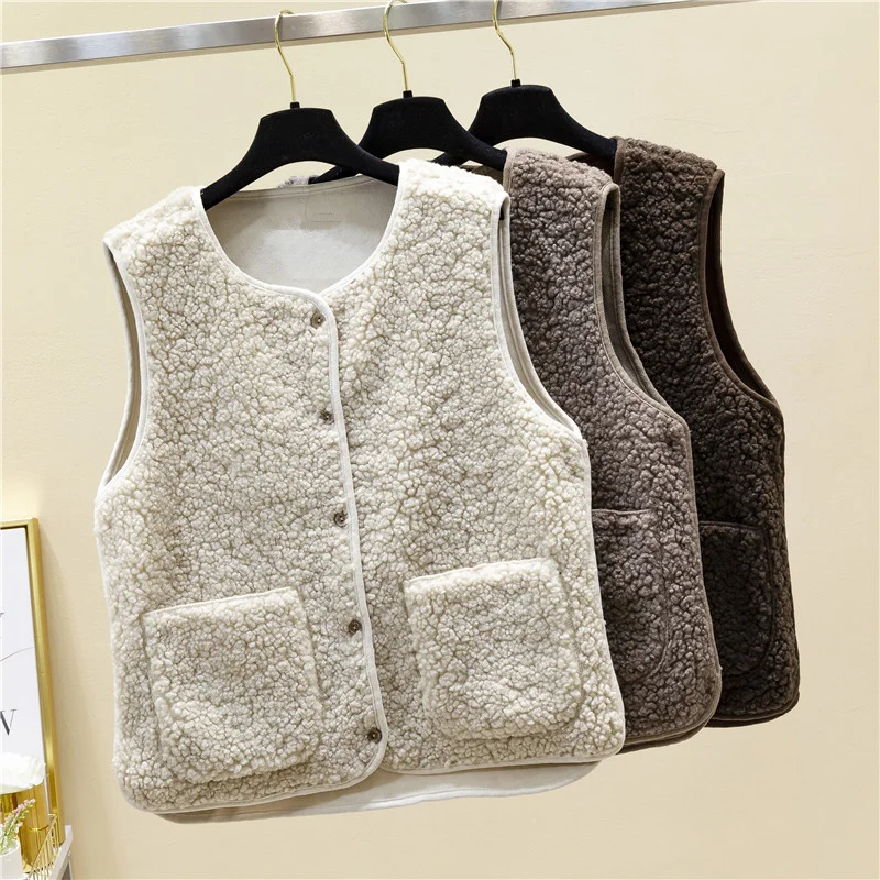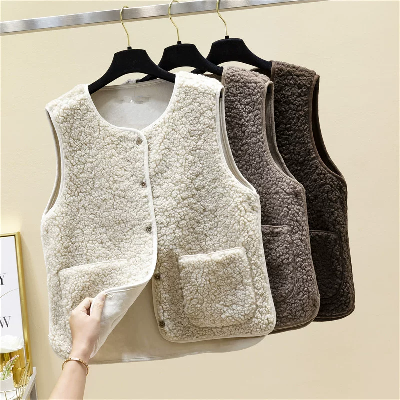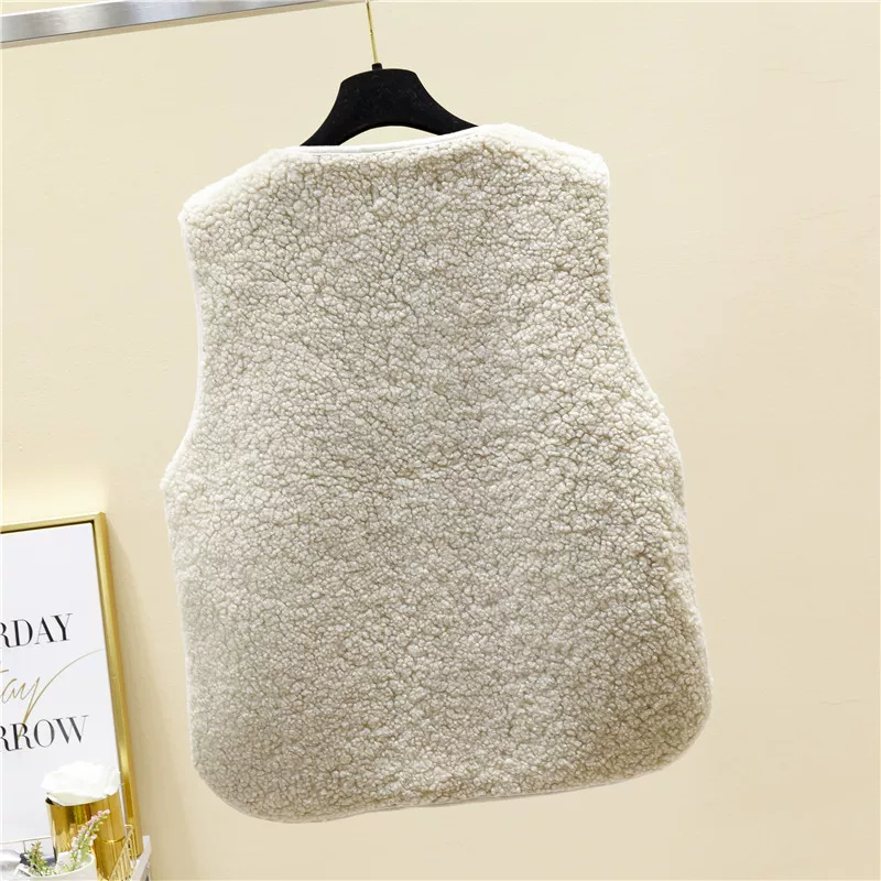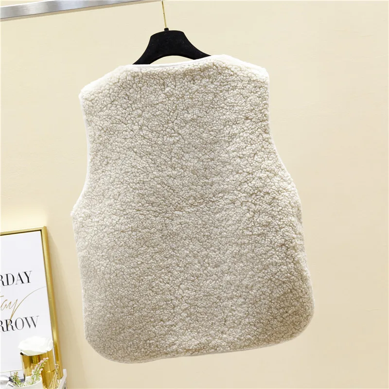 Женский Осенний теплый плюшевый жилет без рукавов из овечьей шерсти, Корейская версия, свободный меховой короткий жилет, верхняя одежда, куртка