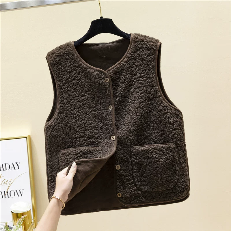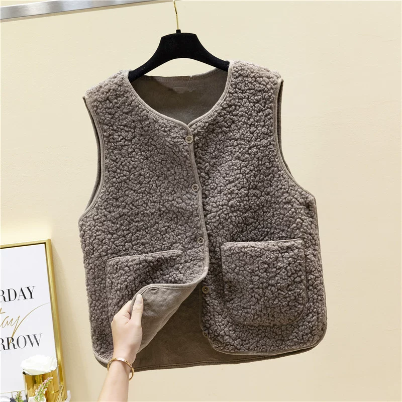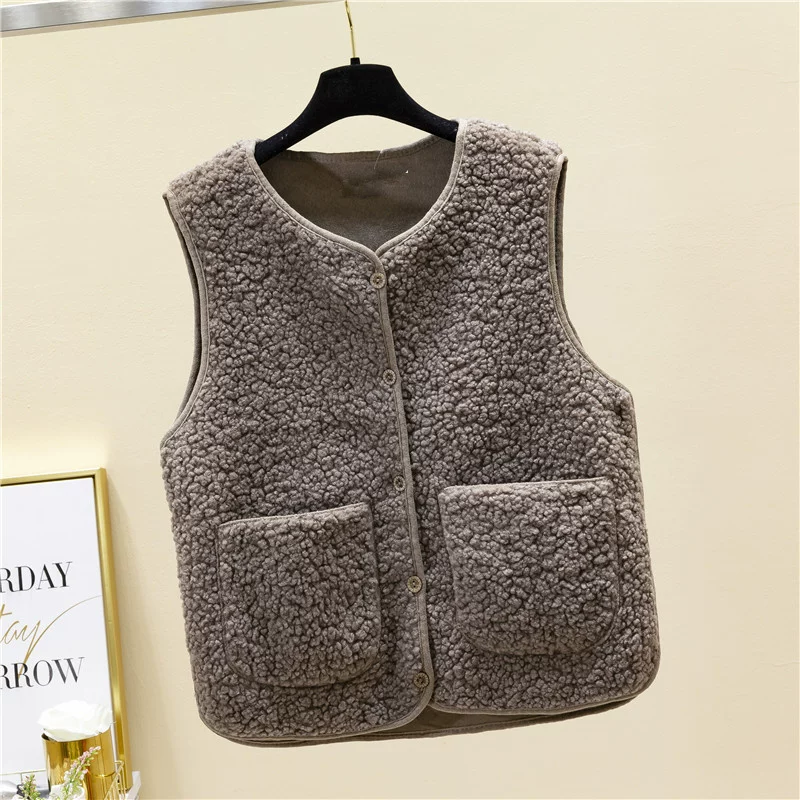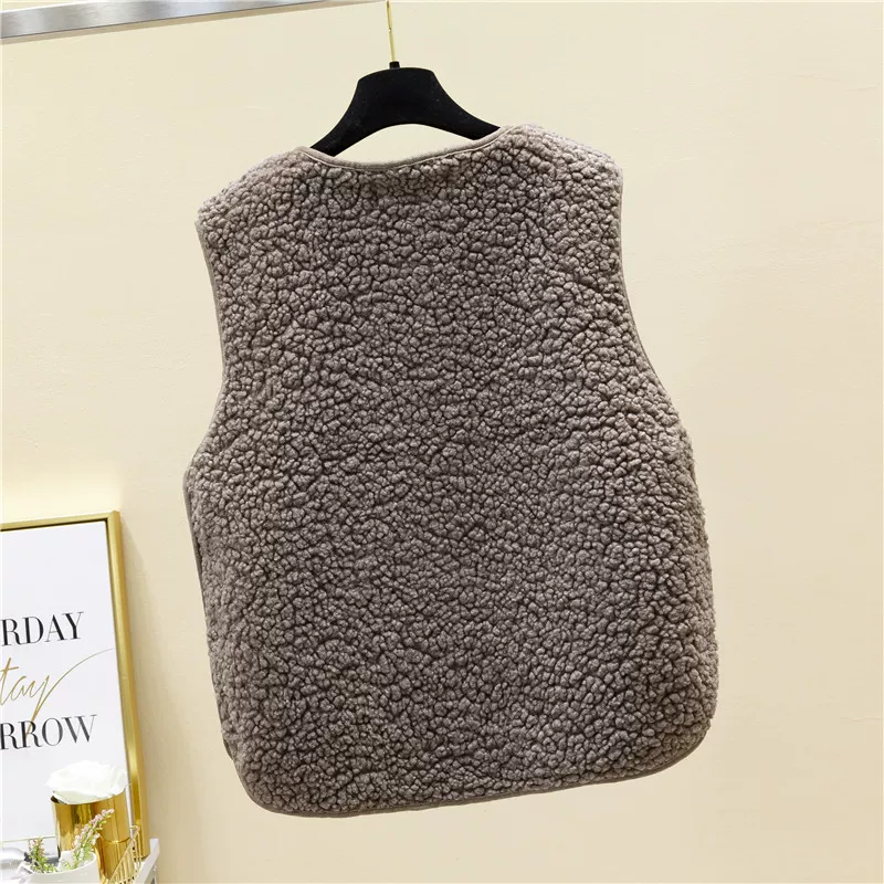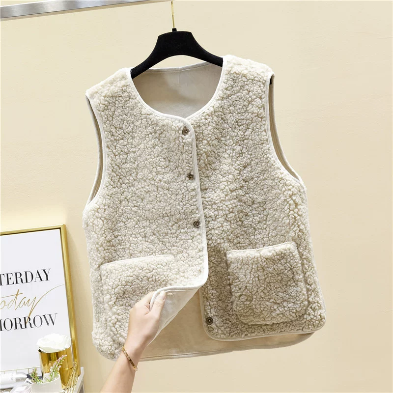 Женский Осенний теплый плюшевый жилет без рукавов из овечьей шерсти, Корейская версия, свободный меховой короткий жилет, верхняя одежда, куртка