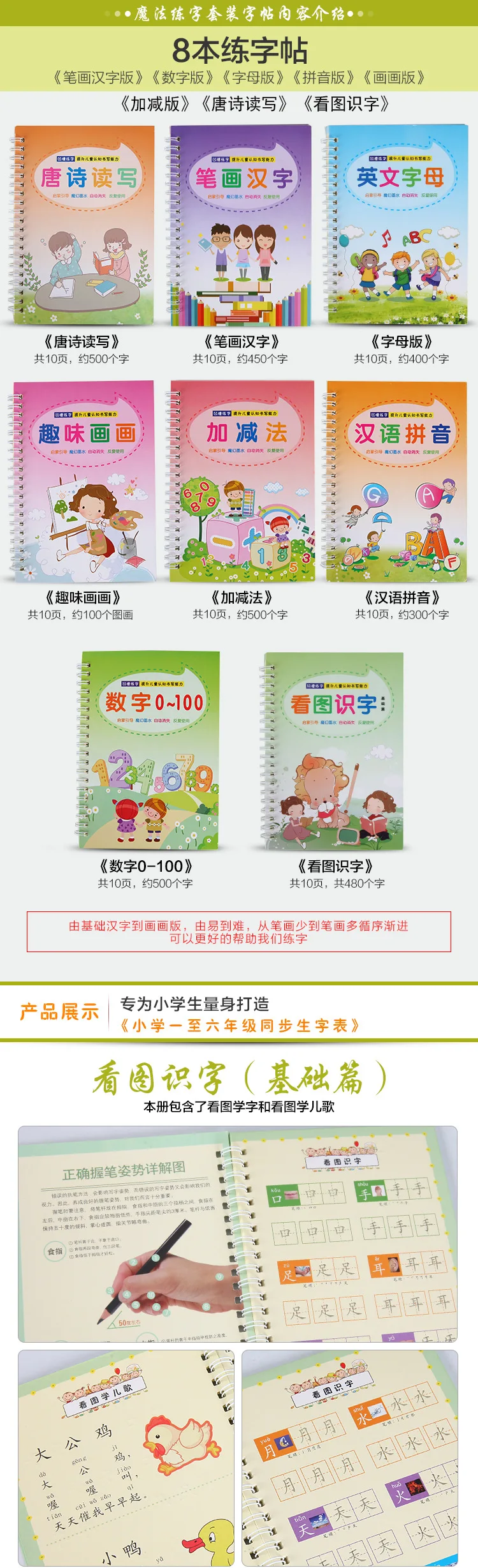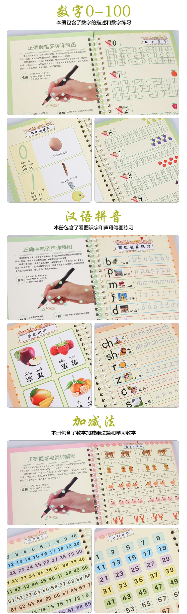 Многоразовая копировальная книга для каллиграфии учим алфавит живопись арифметическая Математика дети почерк практика книги детские игрушки