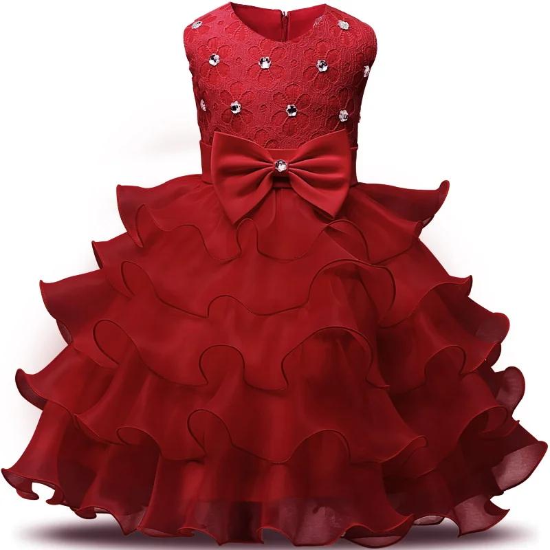 Вечерние платья принцессы для маленьких девочек; Красное платье для церемонии рождения; Фатиновые платья для выпускного бала; Костюм для крещения для новорожденных; Для первого дня рождения