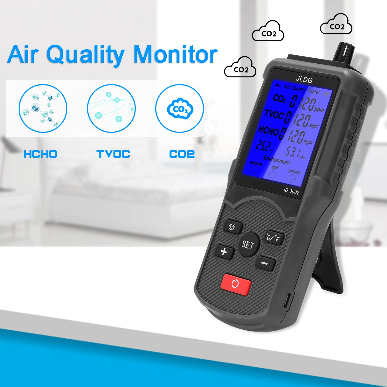 Это своего рода высококачественный детектор качества воздуха, который принимает Профессиональный электрохимический зондирующий модуль, высокую точность, стабильную производительность, способность к подавлению помех, низкое потребление и может обеспечить длительный срок службы. Точное определение CO2. Большой дисплей, вы можете видеть количество электроэнергии, значение CO2, значение TVOC, значение HCHO, температуру и влажность четко. Вы можете попробовать.Особенности:Принимает цифровой датчик температуры и влажности, высокая точность, стабильная производительность, способность к подавлению помех, низкое потребление и может обеспечить длительный срок службы.Большой ЖК-дисплей, вы можете видеть количество электроэнергии, значение CO2, значение TVOC, значение HCHO, температуру и влажность четко.Переключение ℃ и ℉, и звуковой сигнал может быть включен или выключен в соответствии с вашими требованиями.Оснащен функцией оценки качества окружающей среды, он будет отображать соответствующий уровень в соответствии с измерительной стоимостью.Встроенный литиевый аккумулятор емкостью 1800 мАч, легко заряжать его с помощью usb-кабеля.Когда аккумулятор слишком низок, рамка аккумулятора мигает, чтобы напомнить вам о его перезарядке.Характеристики:Наименование: измеритель качества воздухаМатериал: пластикДисплей: ЖК-дисплейБатарея: 1 * Встроенная литиевая батарея Батарея, 3,7 V, 1800mAh(В комплекте)Диапазон измерения CO2: 350ppm-2000ppmTVOC измерение-диапазон: 0,000 мг/м³-2,000 мг/м³HCHO измерение-диапазон: 0,000 мг/м³-1,000 мг/м³Измерение температуры-Диапазон: 0 ℃-90,0 ℃(32 ℉-194 ℉), ± 1 ℃/± 1 ℉Размер изделия: 176*73*29 мм/6,93*2,87*1,14 дюймовВес изделия: 222 г/7,83 унцияРазмер посылка: 234*180*47 мм/9,21*7,09*1,85 дюймаПосылка Вес: 461 г/1.02lbУпаковочный лист:1 * измеритель качества воздуха1 * USB кабель