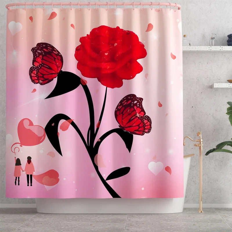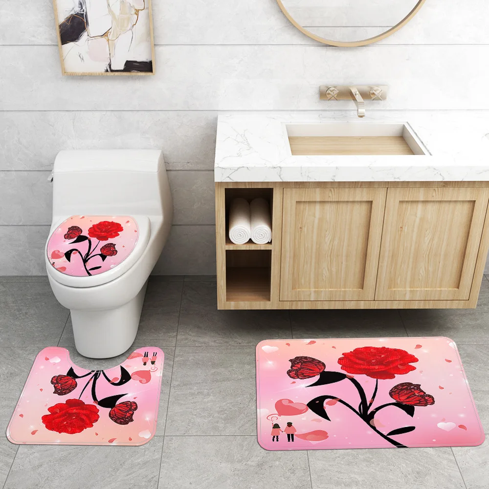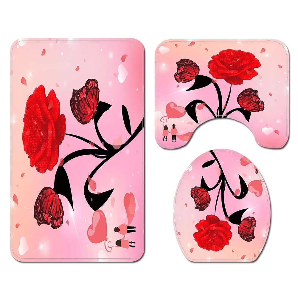 Коврик для ванной с цветочным принтом и занавеска для душа, набор для ванной на День святого Валентина, нескользящий коврик для душа, фланелевый Коврик для пола