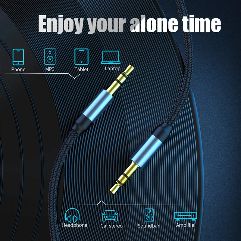 Нейлоновый аудиокабель 3,5 мм со штыревыми соединителями на обоих концах, кабель AUX в оплетке для автомобильной гарнитуры, Удлинительный кабель для автомобильного динамика MP3 Aux