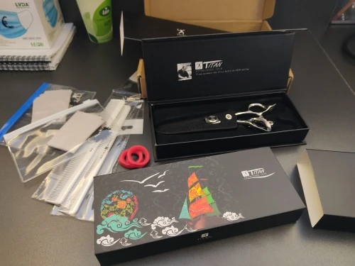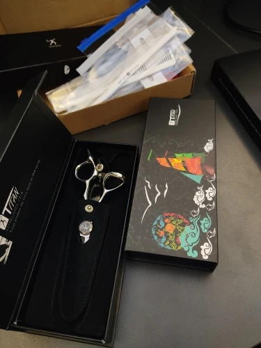 Ножницы доставили за 12 дней. Упакованы хорошо в картонной коробочке, а сами ножницы дополнительно в фольгу обмотали. Ножницы были в чехольчике, и в коробочку дополнительно положили белый гребень, ключ для ножниц и тряпочка. В работе ножницы ещё не проверял, а в руке сидят отлично, и внешнее очень симпатичные. Была одна накладка, приехал заказ с ножницами для филировки, а я заказывал обычные, продавец извинился и предложил кучу вариантов как выйти с этой ситуации. Он отправил мне такие как я хотел и сделал очень хорошую скидку. Филировачные ножницы тоже отличные и внешне, и упакованы. Продавца рекомендую, а ножницы опробую и дополню отзыв. Хороших покупок ;)
