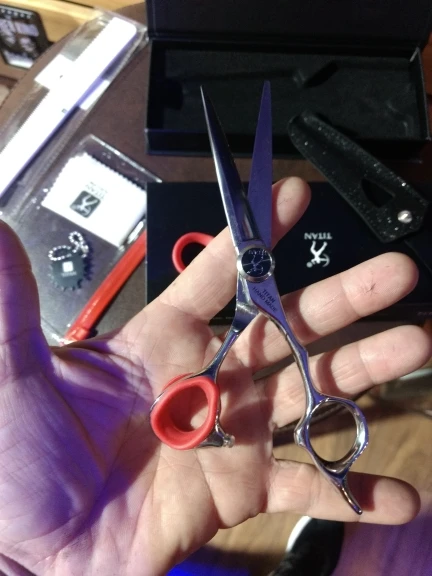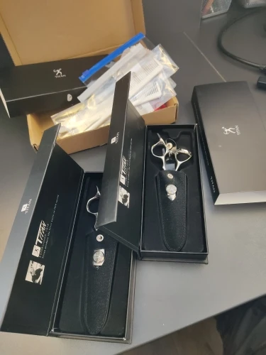 Они классные дизайн качество исполнения , в работе еще не проверял , но есть одно большое НО в руке не режущее полотно а филировочное, я не знаю это брак или это доя левшей или так задуманну, я привык не так. Поработаю дополню