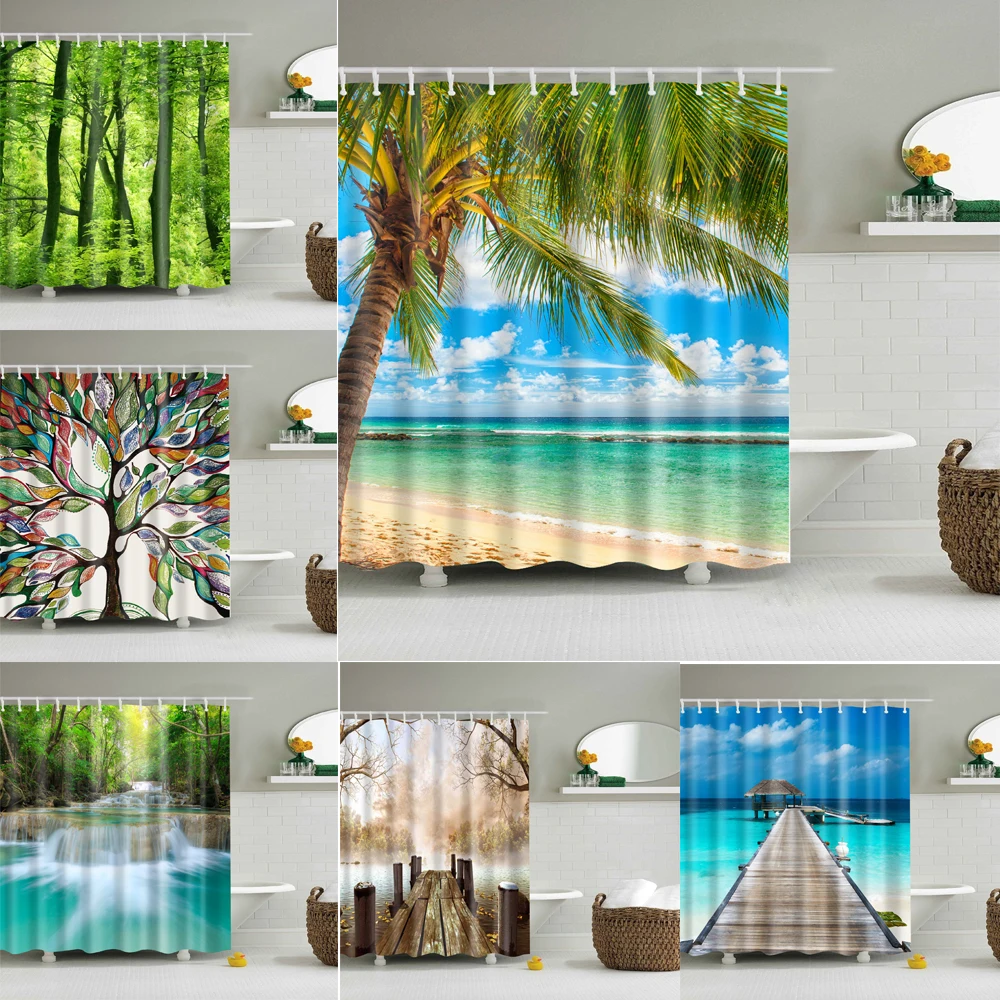 Занавески для душа из полиэстера, водостойкие, с 3D-принтом леса