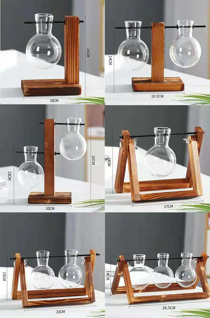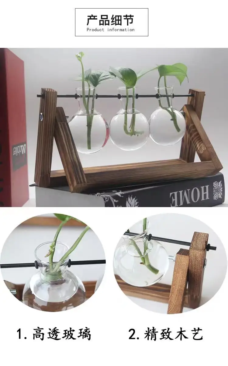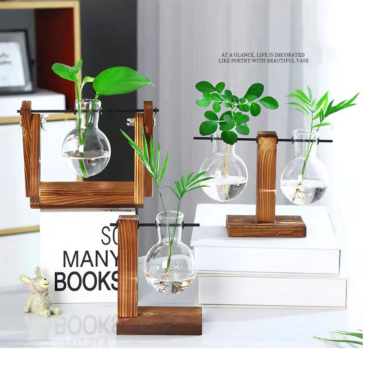 Гидропонная фотография Terrarium с деревянной подставкой, винтажный Прозрачный цветочный горшок, стеклянная ваза, Настольная Фотография