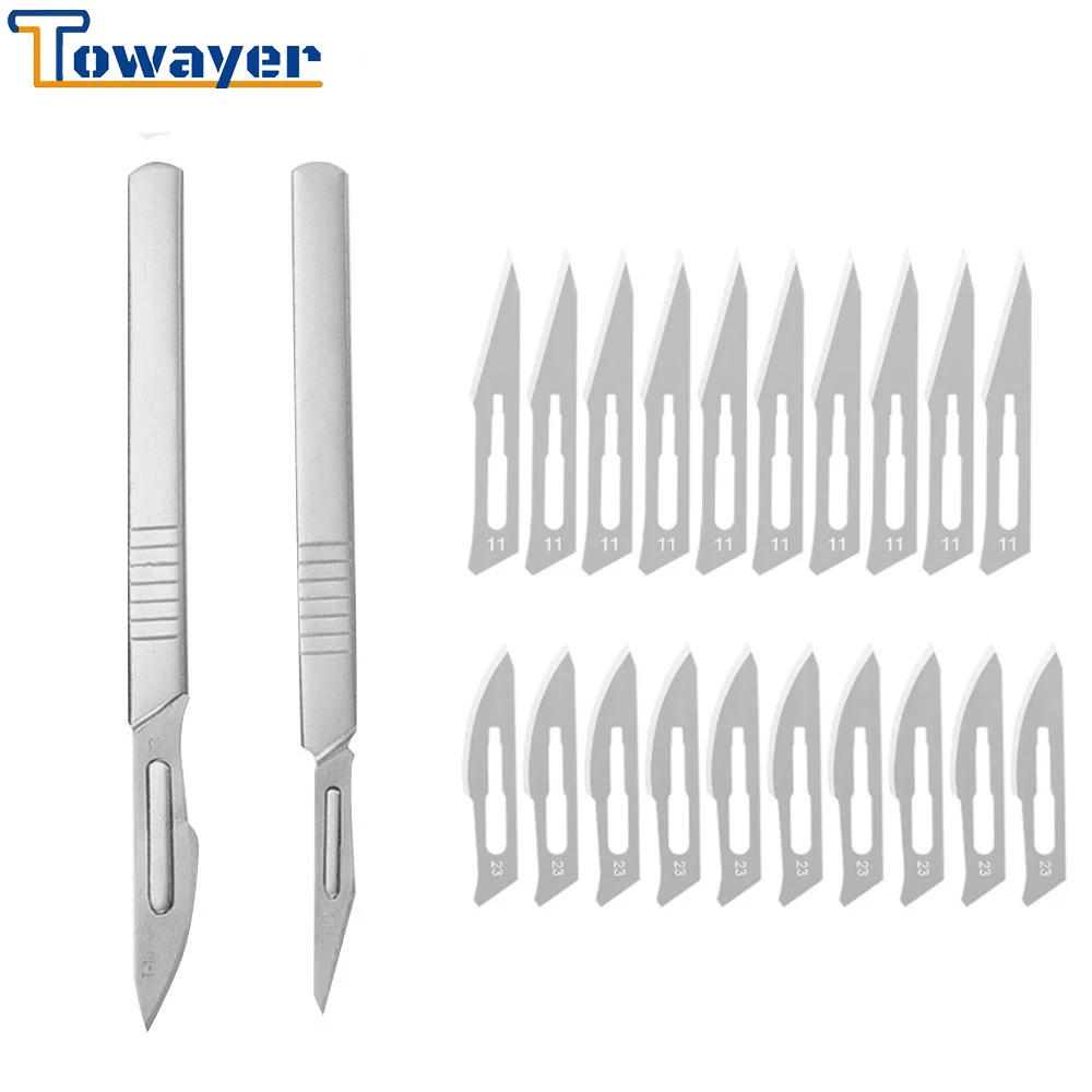 Нож хирургический из углеродистой стали с лезвиями и рукояткой, режущий инструмент для домашнего творчества, 10 шт.