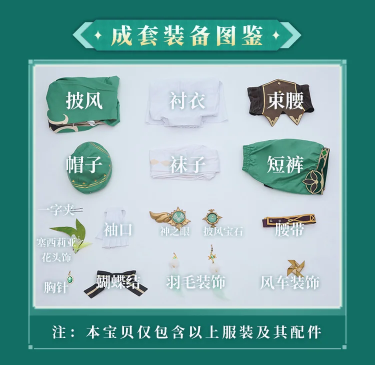 Костюм для косплея из аниме Genshin Impact Venti, оригинальная версия, военная униформа, Хэллоуин, 2020New