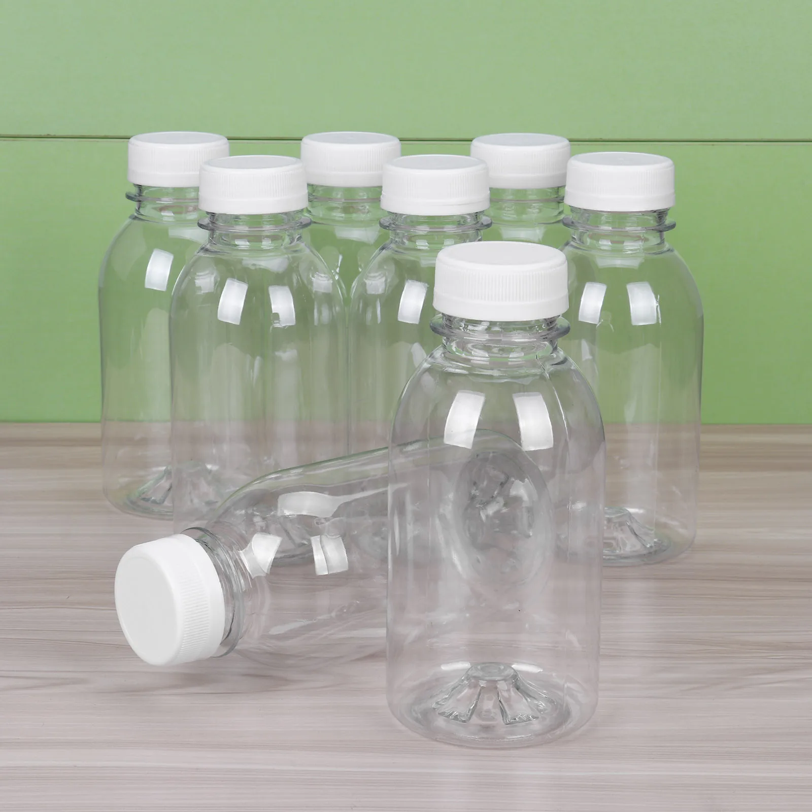 Особенности: Прозрачный Пластиковый пустой контейнер для безалкогольных напитков бутылка с крышкой для апельсинового яблочного лимонного сока молочные смузи. Изготовлен из высококачественного ПП и ПЭТ материала, легкий, прочный, высокая прочность и хорошая прочность. С герметичными уплотнениями и белыми колпачками для сохранения газа и сока свежим. Вогнутое дно для подушки давления воздуха. Портативный и удобный для общественного питания, грузовика для еды, бара для сока, хранения хлебобулочных напитков, путешествий, кемпинга, деловых поездок или просто наслаждайтесь здоровыми соками, смузи и молоком дома.