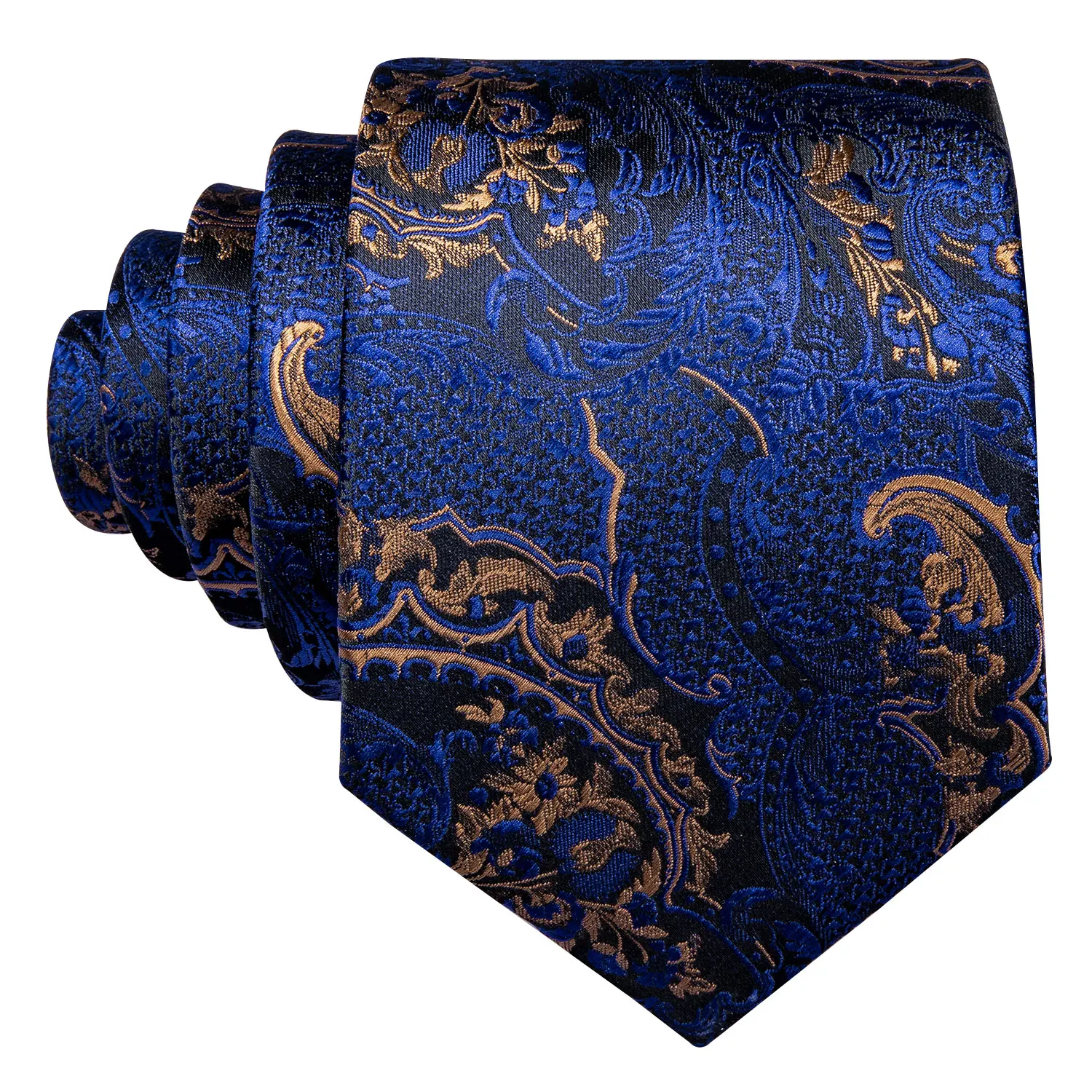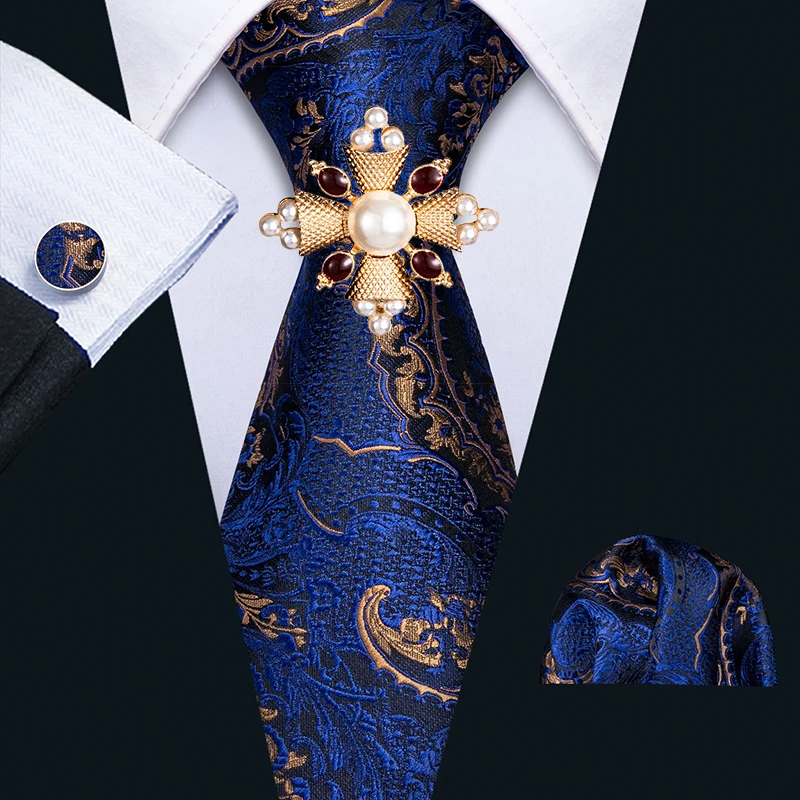2020 мужской галстук темно-синий шелковый галстук с Пейсли 3,4 "жаккардовый вечерний свадебный тканый модный дизайнерский галстук Брошь набор для мужчин