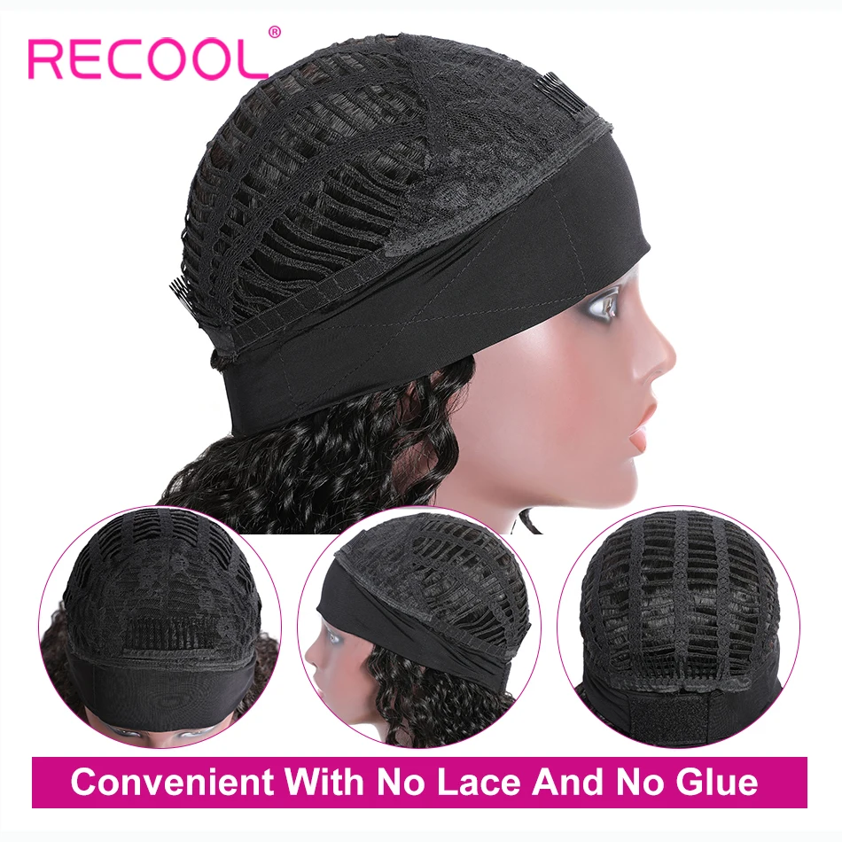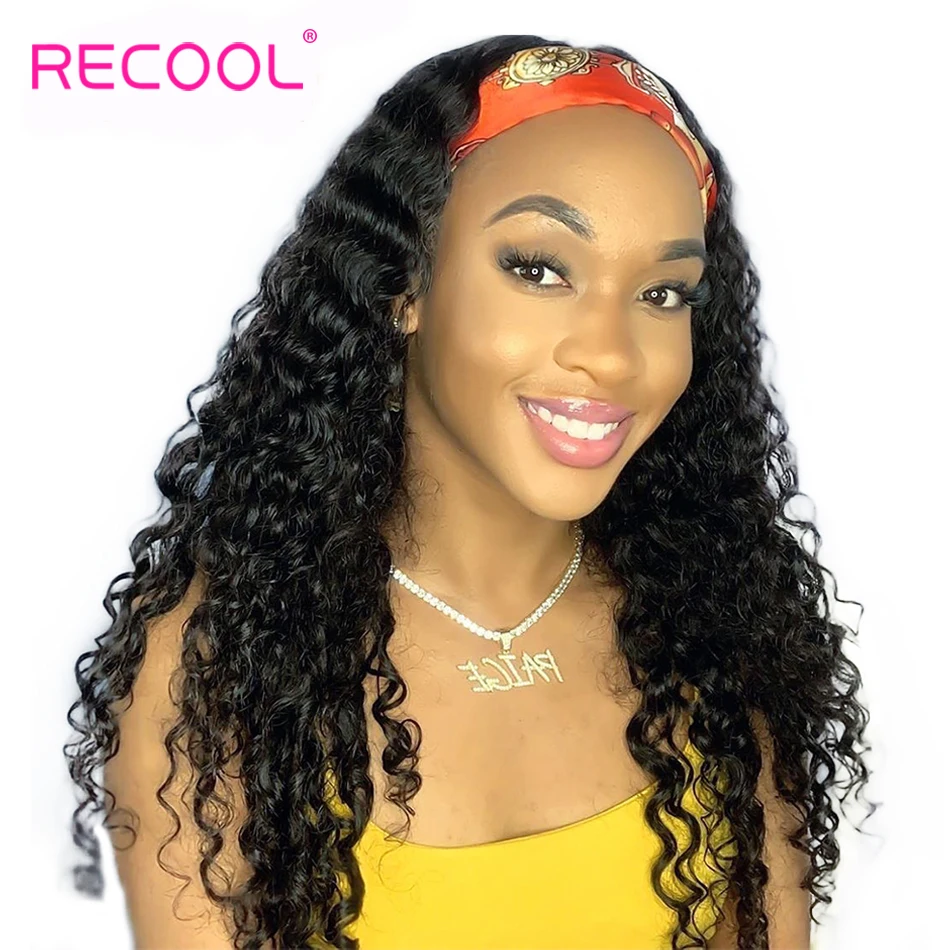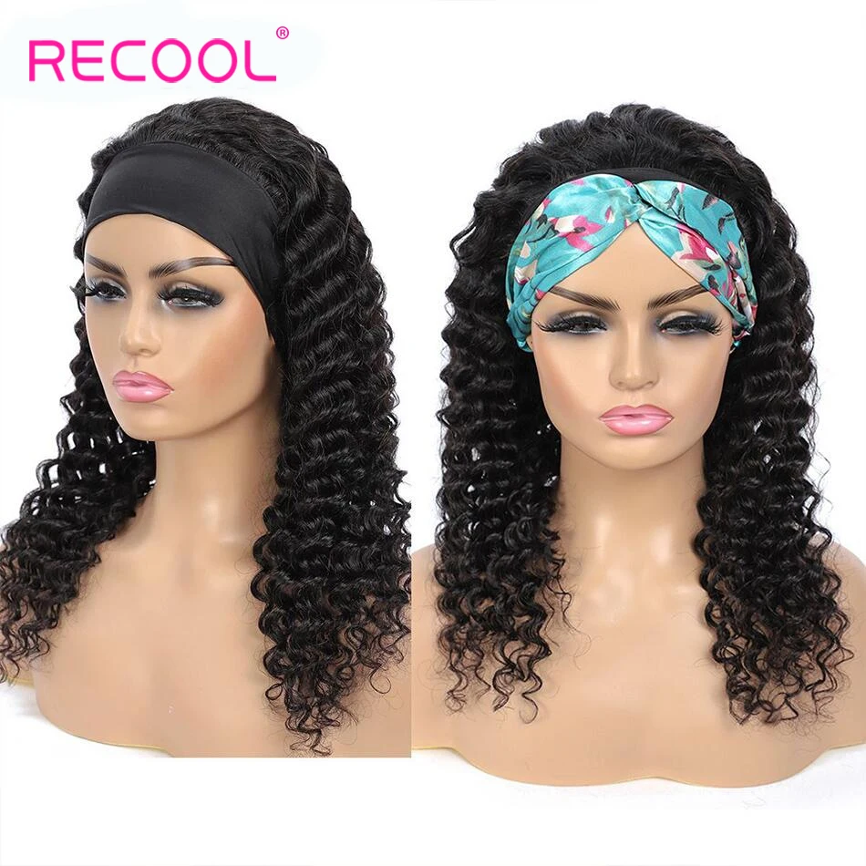 Recool глубокая волна парик с головной повязкой человеческие волосы парики для черных женщин Remy бразильский манекен для шарфа парика без кружева Glueless машина сделал парик
